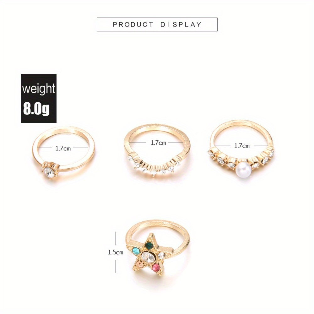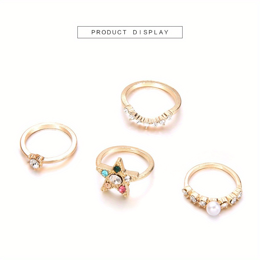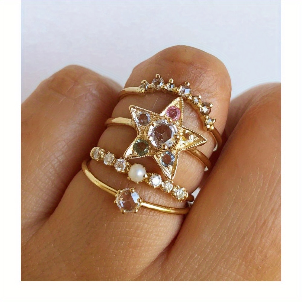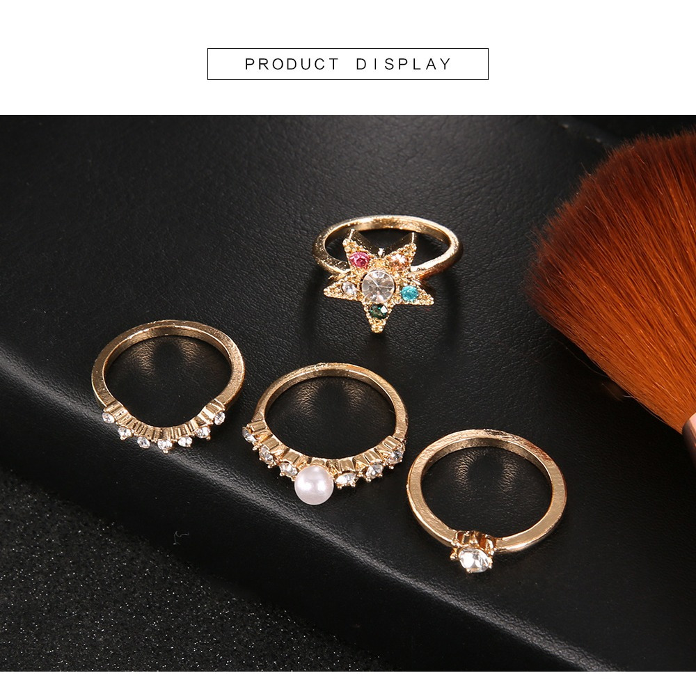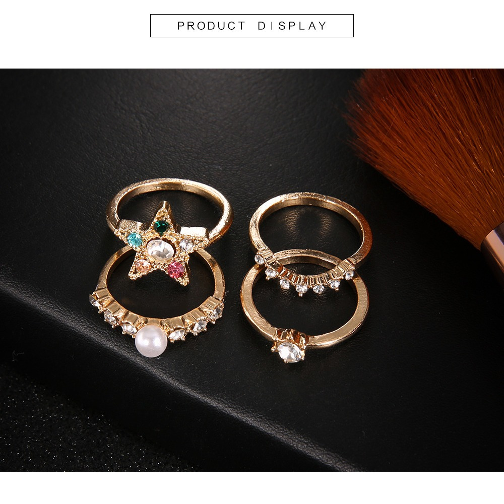 Pearl Pentagram Diamond Ring Ring, Simple and Fashionable 4-piece Joint Ring.