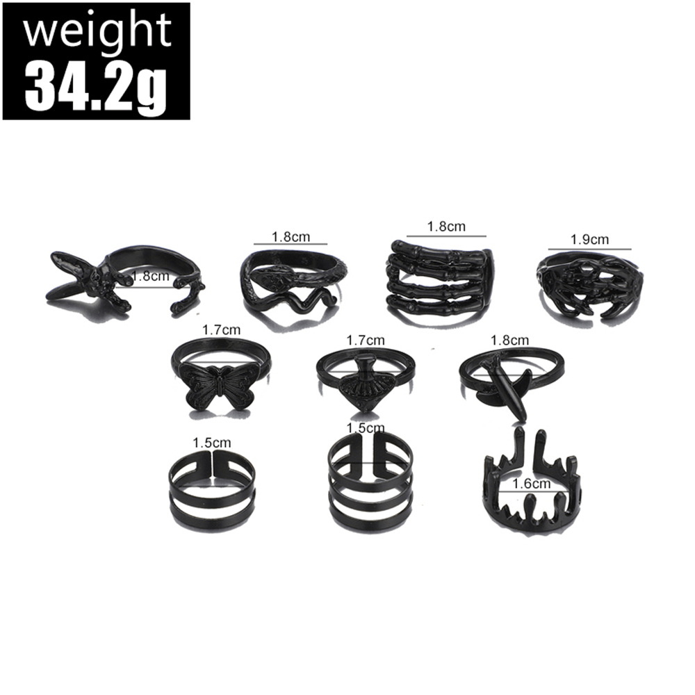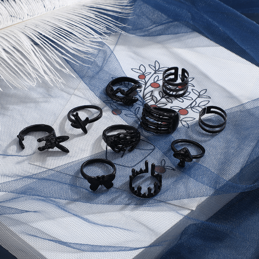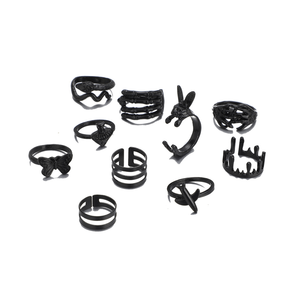 Personality Exaggerated Butterfly Rabbit Mushroom Snake Opening 10-piece Set Electrophoresis Black Ring