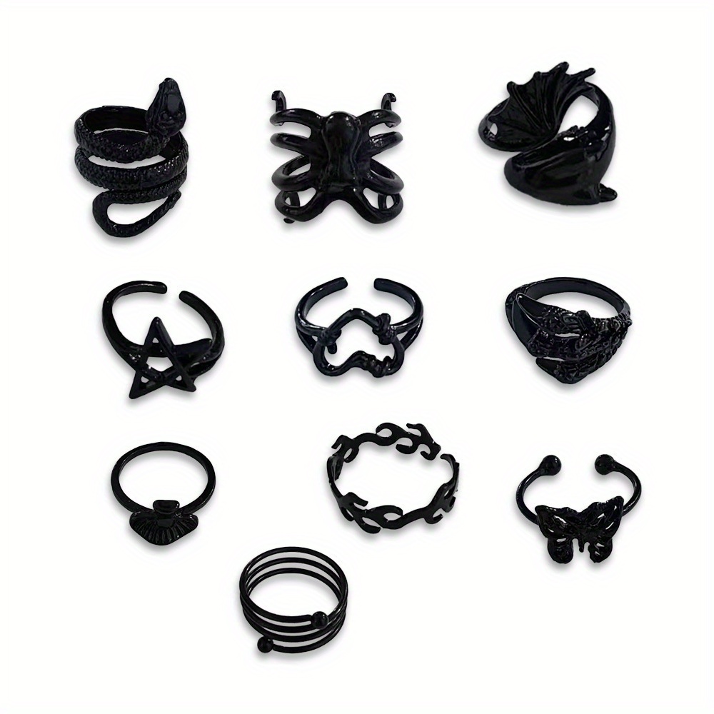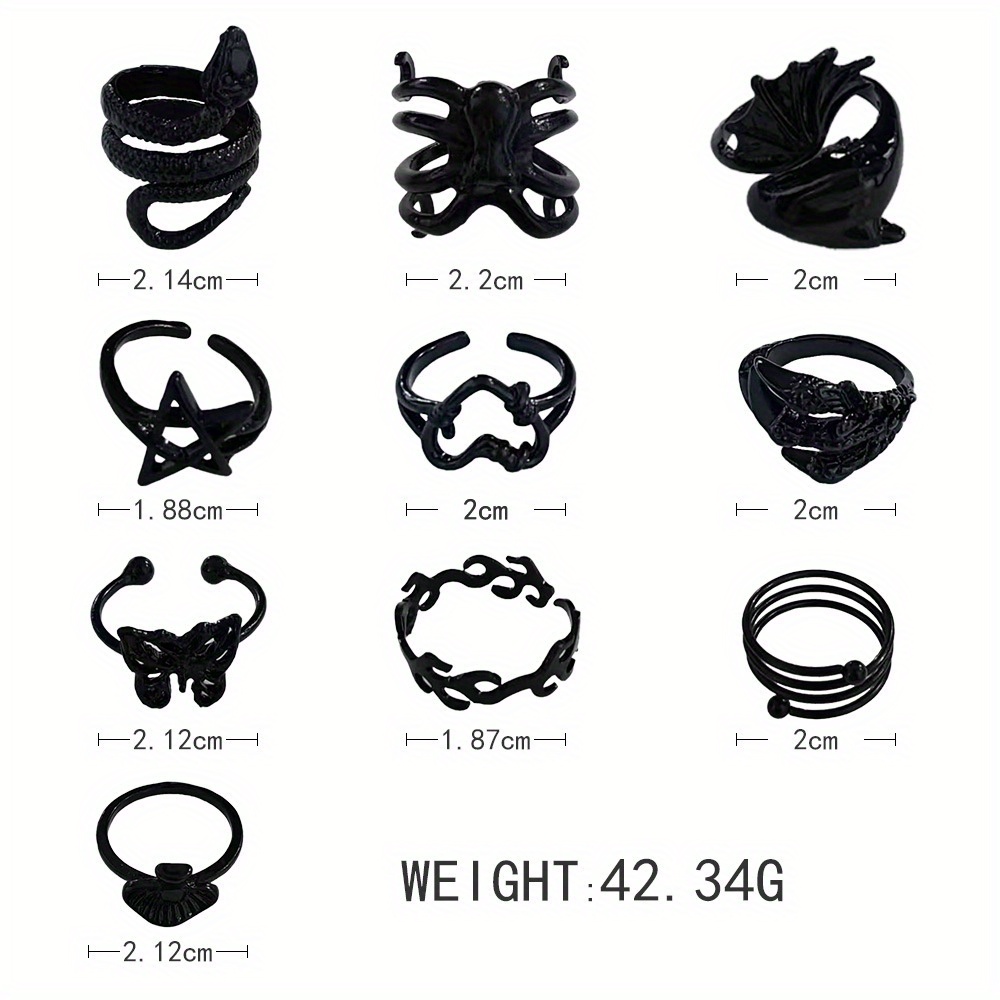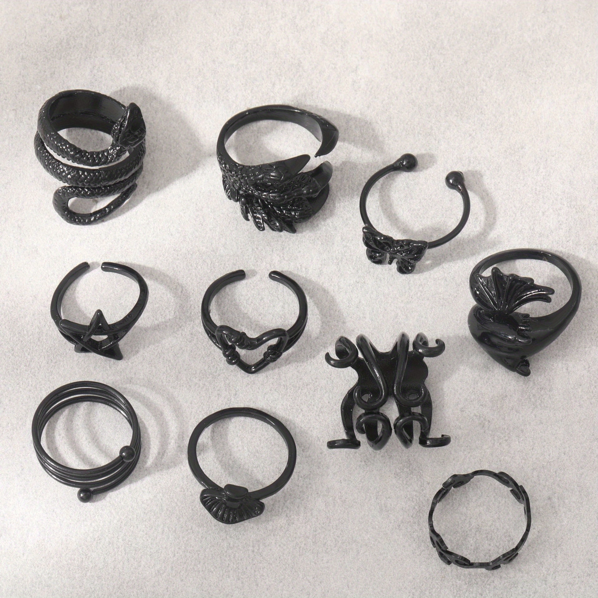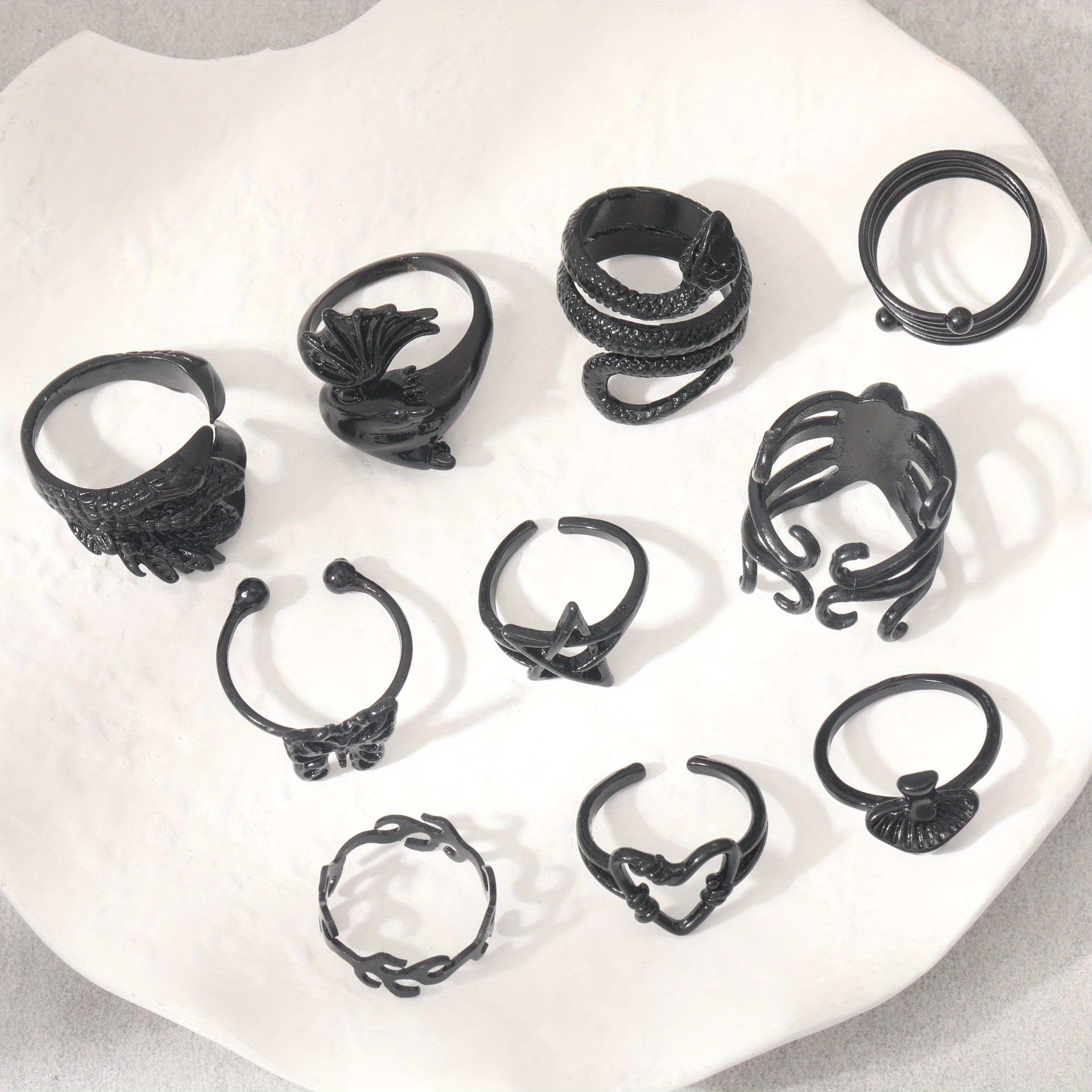 Personality exaggerated electrophoresis black butterfly love mushroom five-pointed star snake claws 10-piece set ring