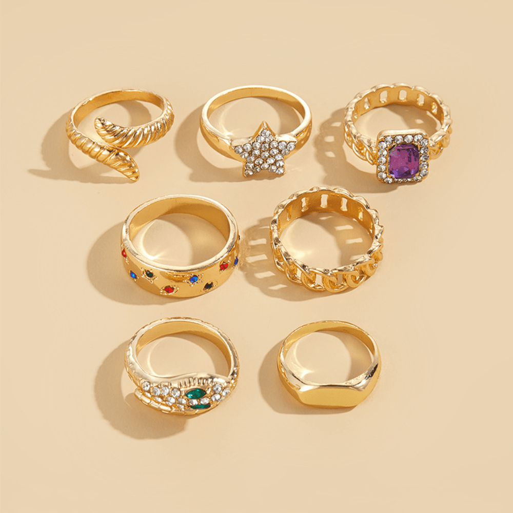 Personalized Alloy 7-piece Set, Ring Star Niche Stacking Set, Metal Exaggerated Open Ring Woman