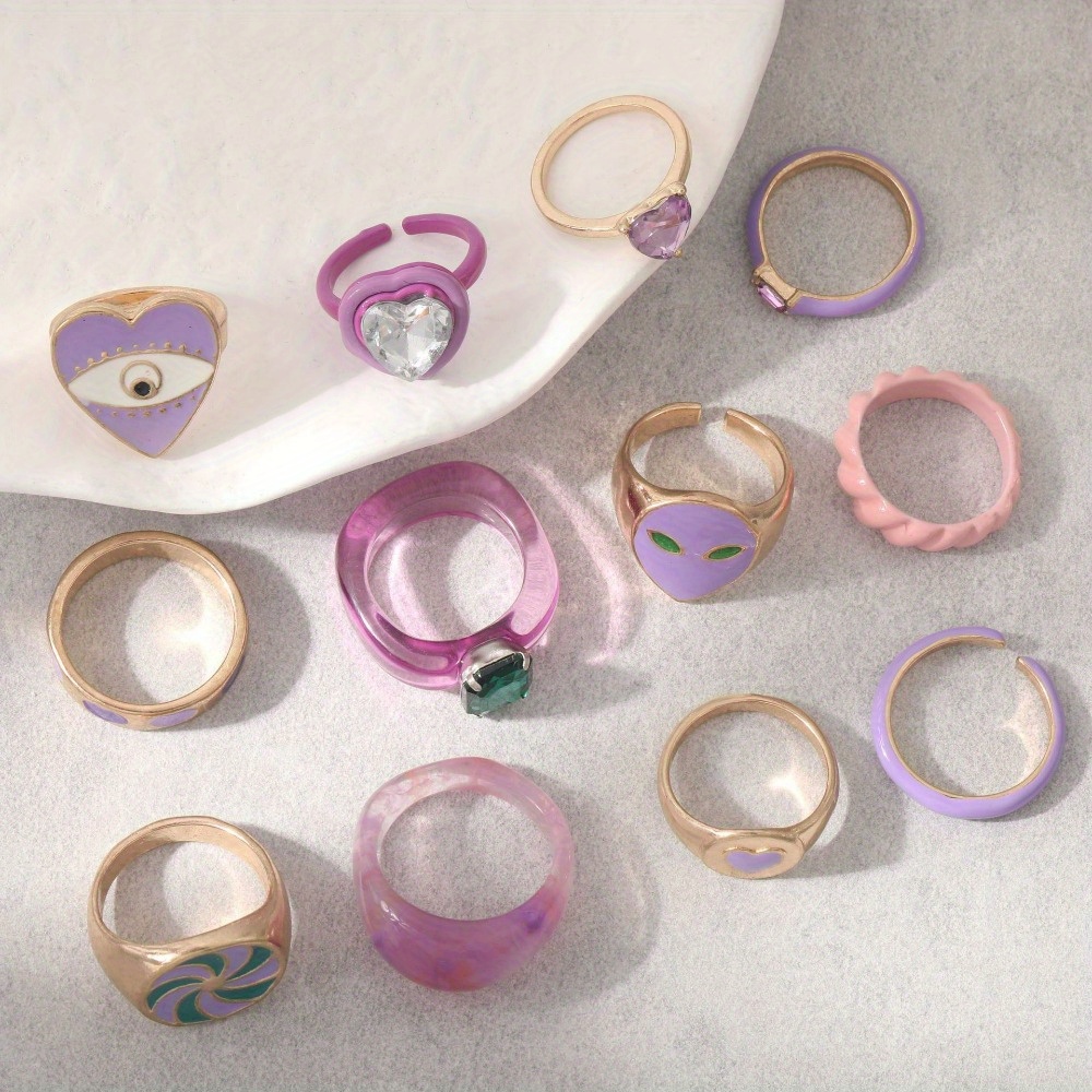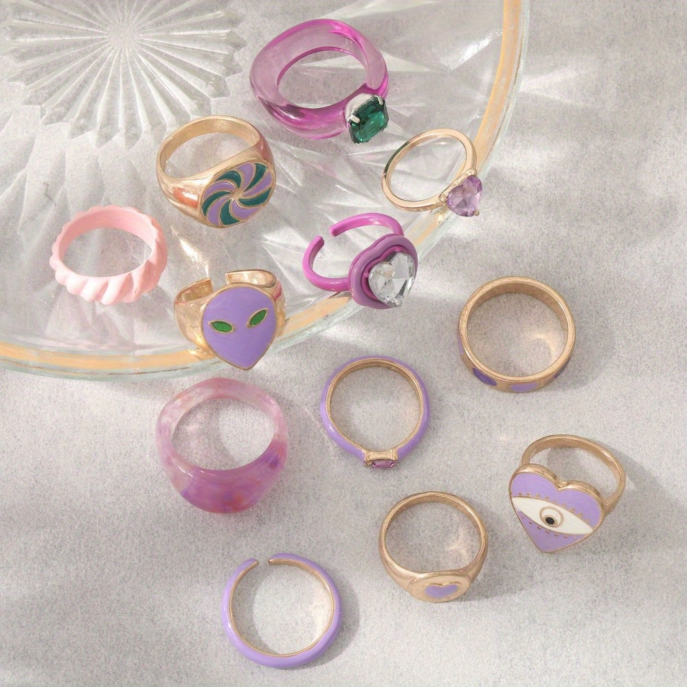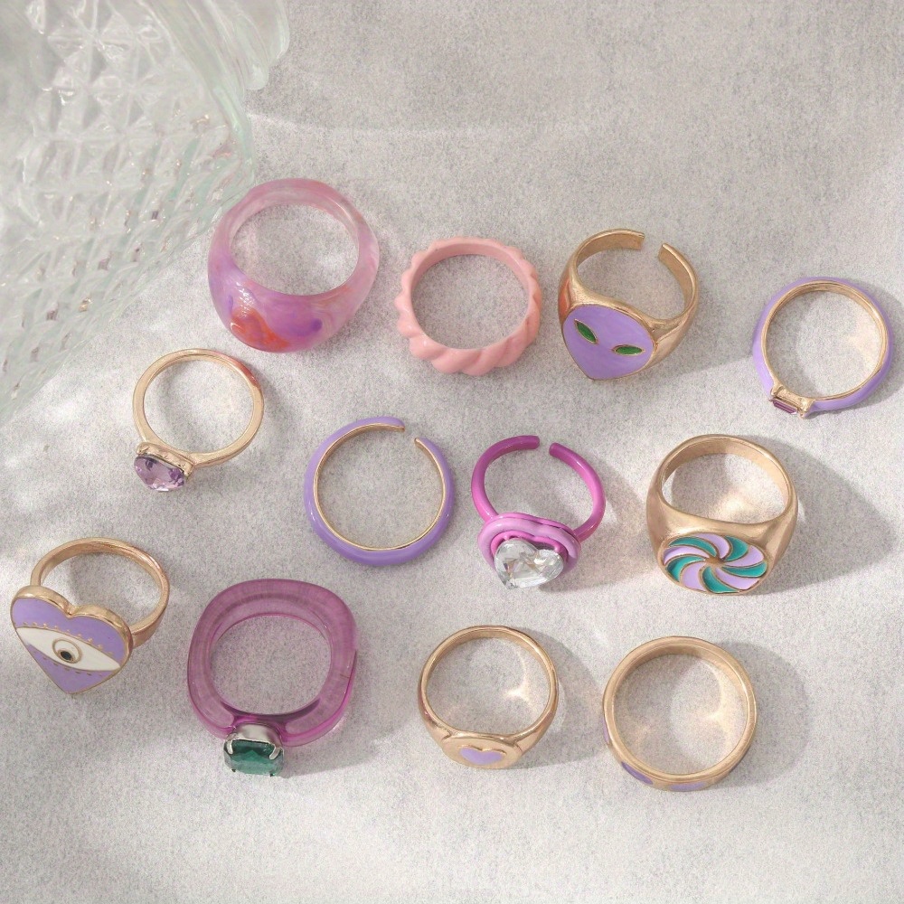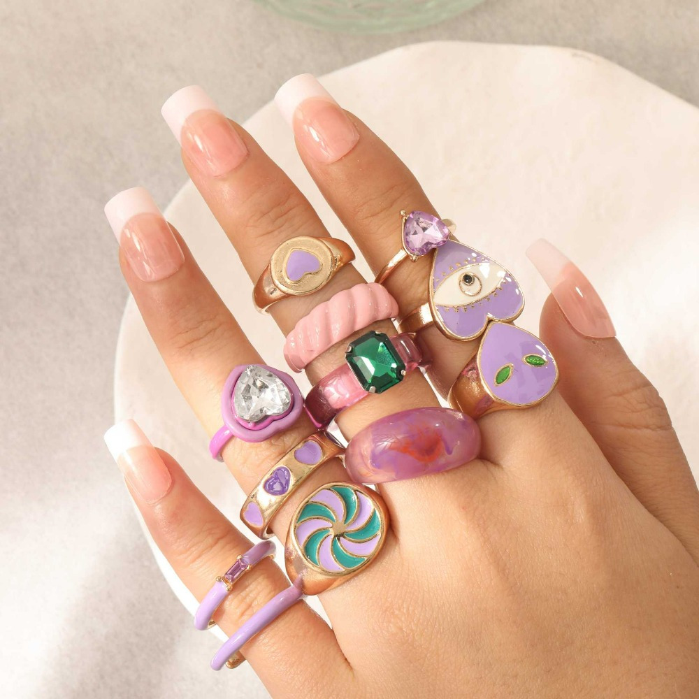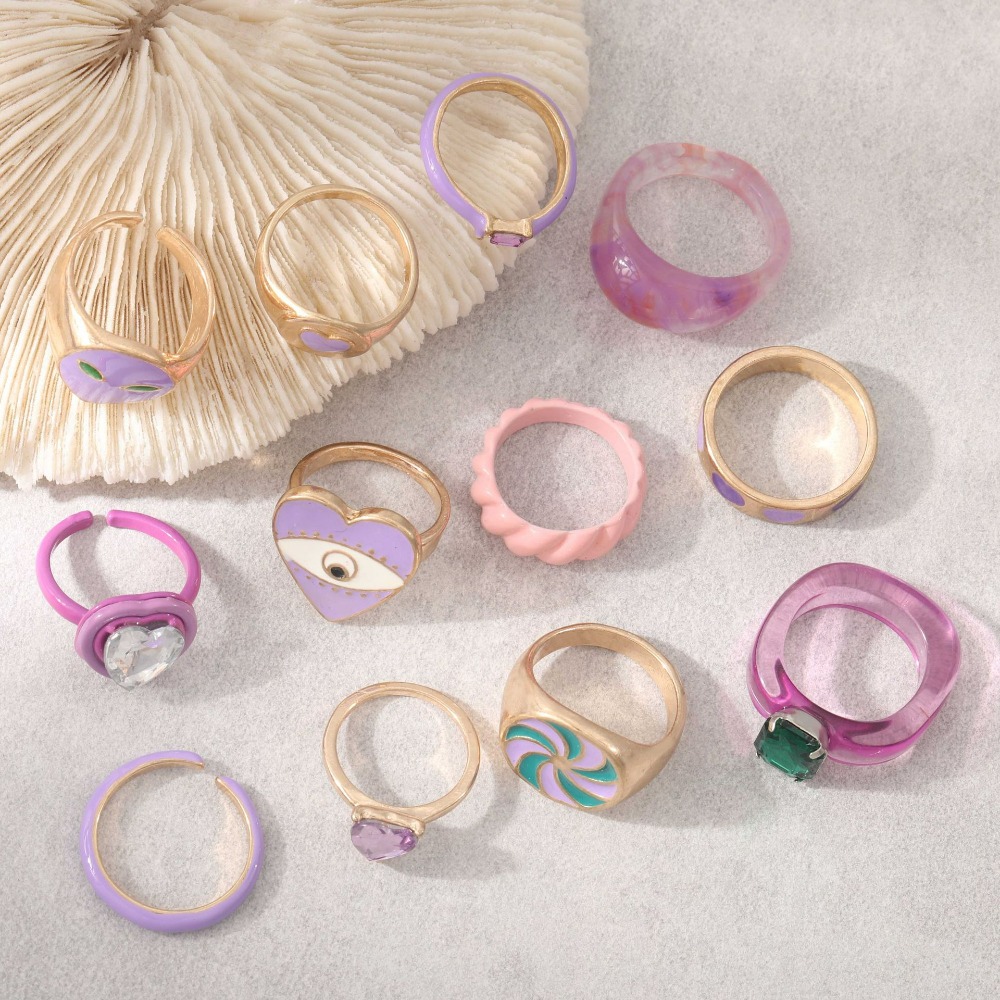 Personalized candy color colorful oil drip diamond 12-piece set ring jewelry