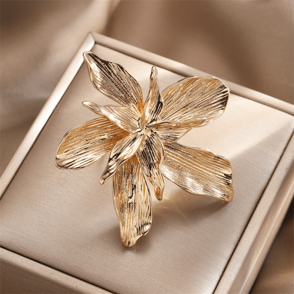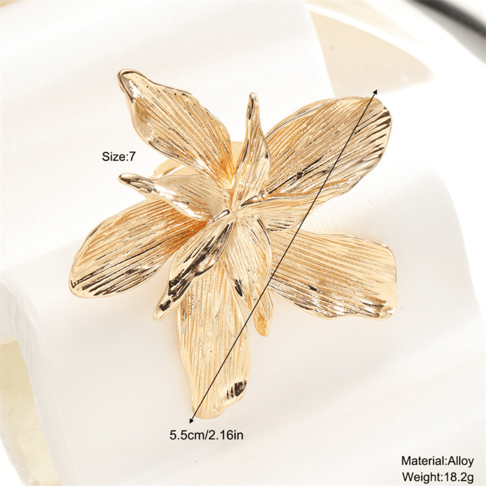 Personalized Five-petal Flower Three-dimensional Flower Opening Ring, Exaggerated Ins Metal Wind Winding Ring