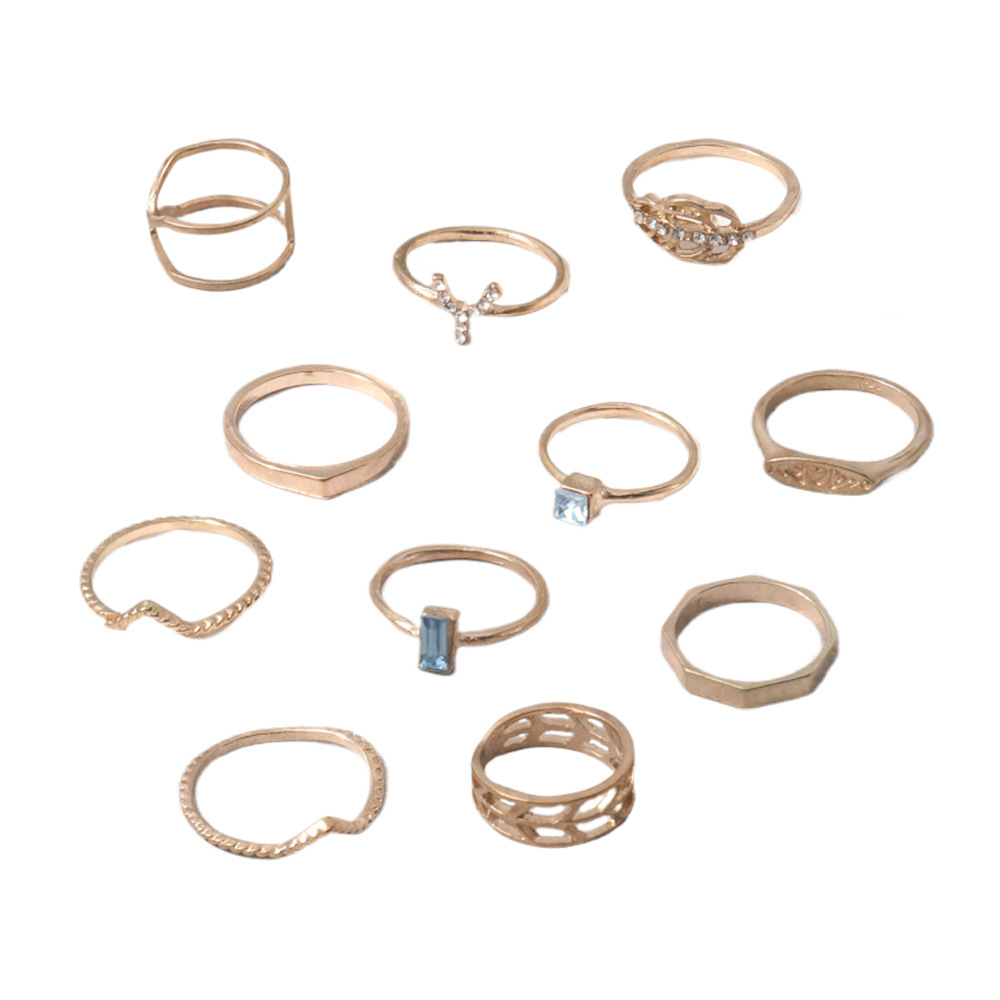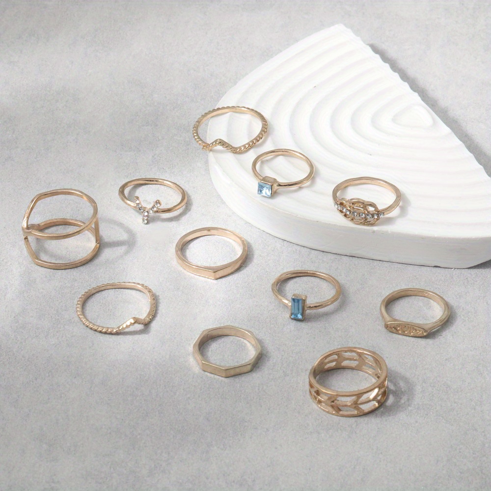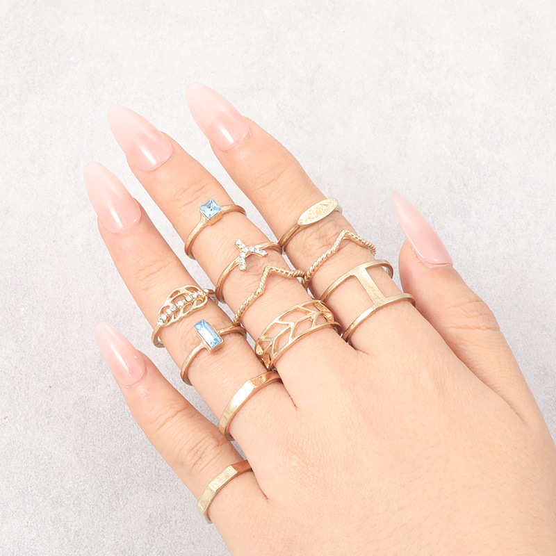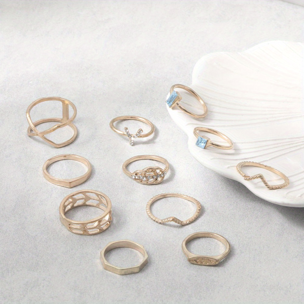 Personalized gold Y-shaped hollow point diamond 11-piece set ring jewelry
