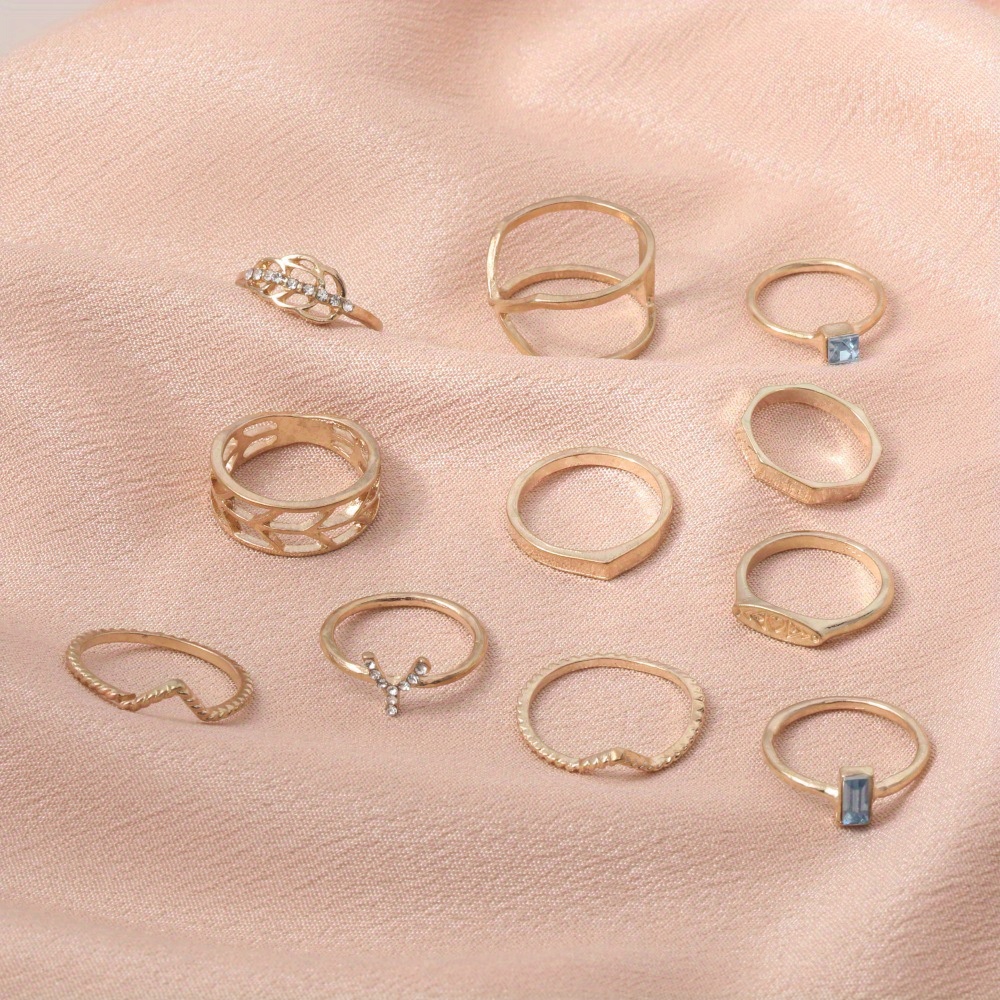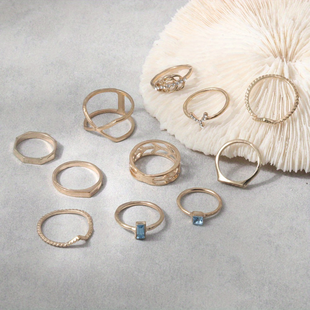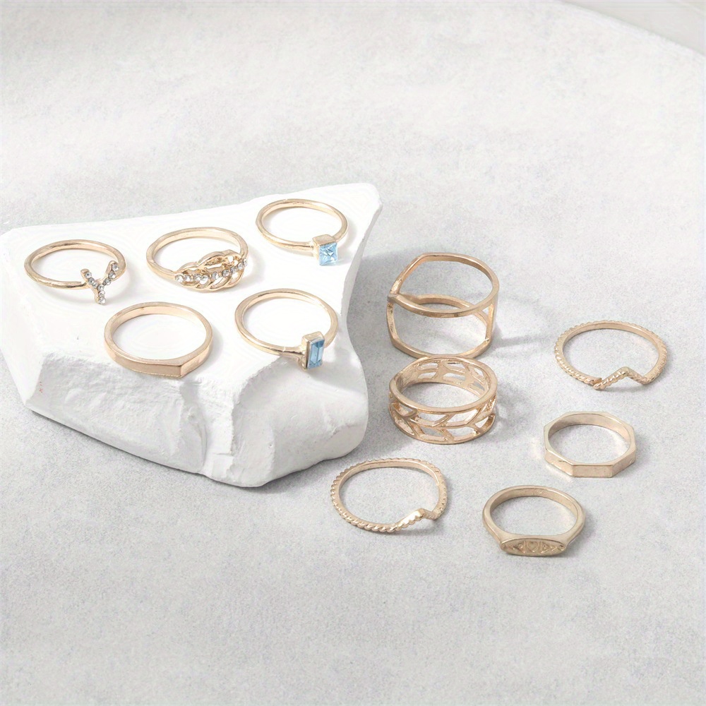 Personalized gold Y-shaped hollow point diamond 11-piece set ring jewelry