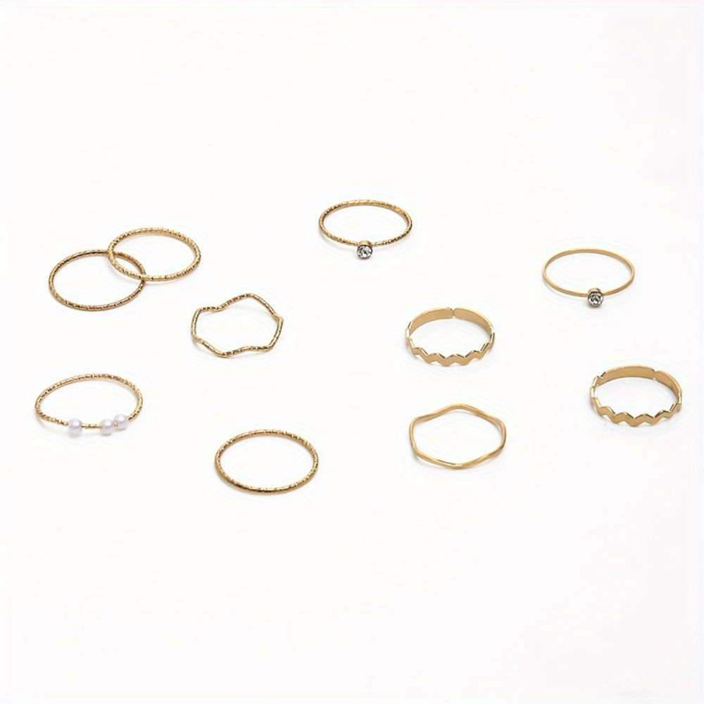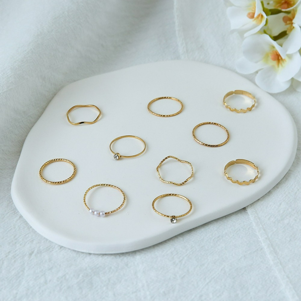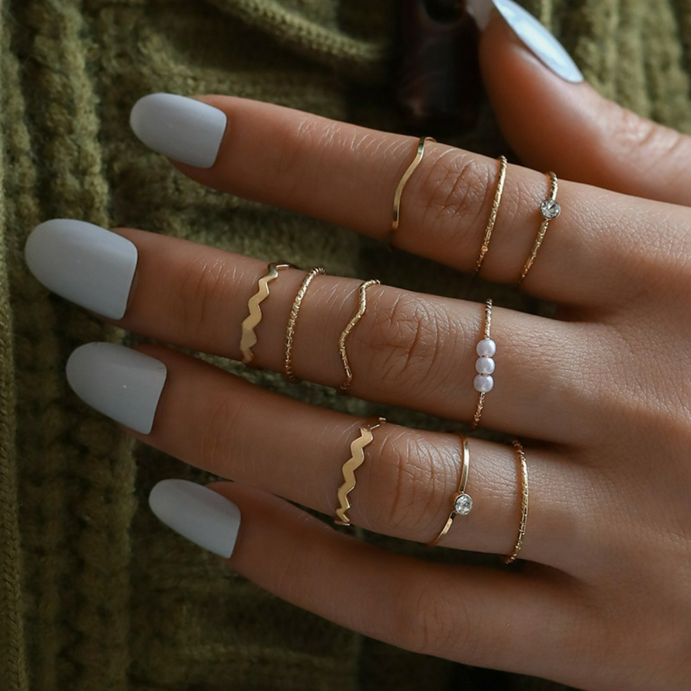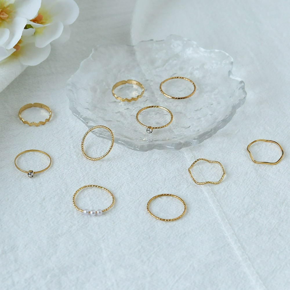 Personalized Internet celebrity ring female niche super fairy cold wind pearl index finger joint ring combination 10-piece set