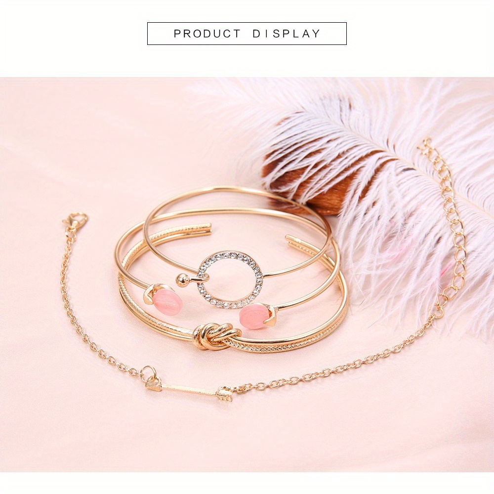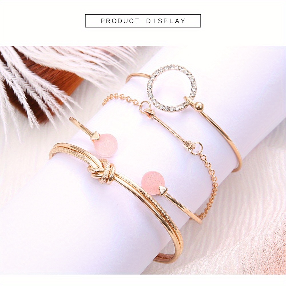 Personalized Knotted Ring, Circle with Diamonds, Arrow Bracelet, Bracelet, Four-piece Set Bracelet.