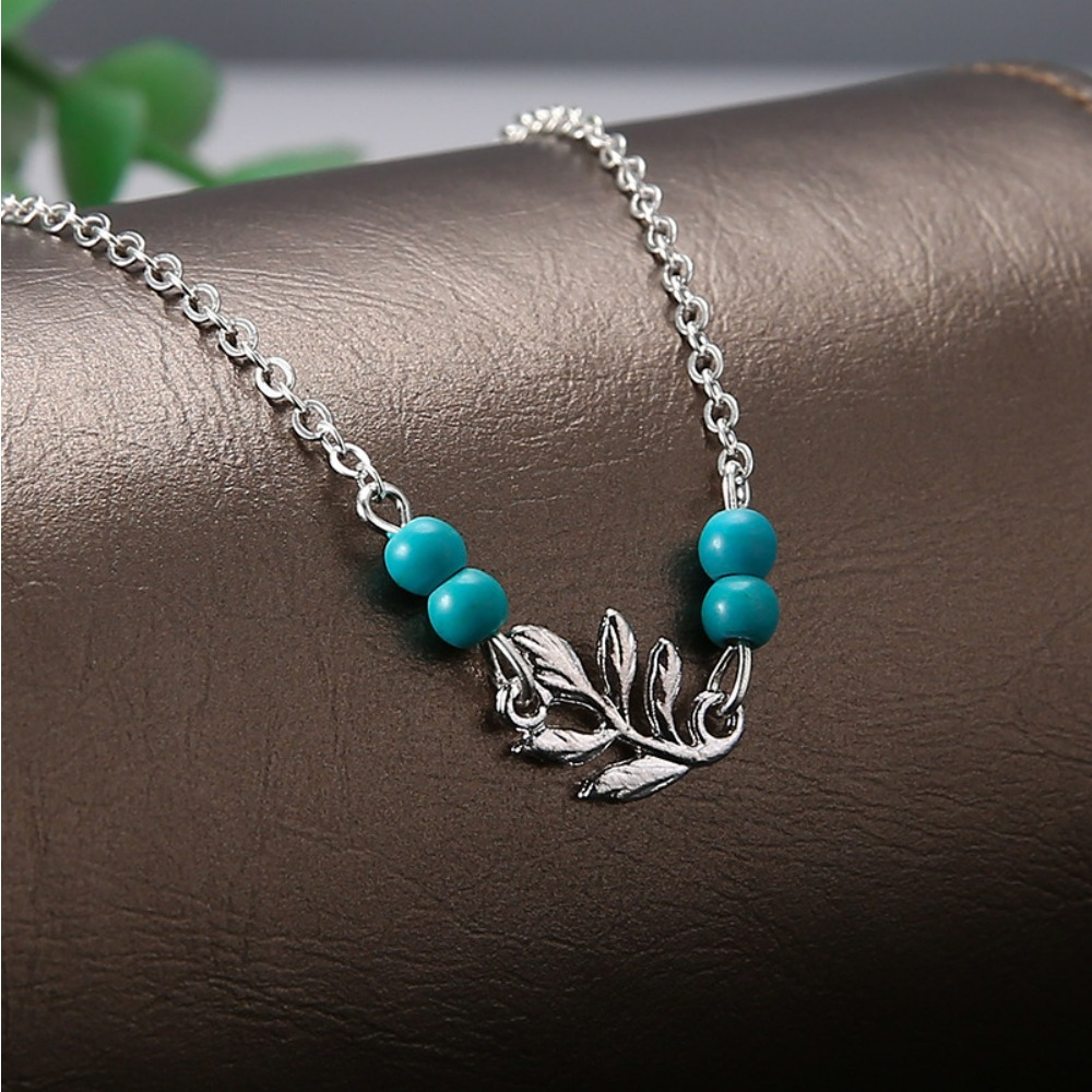 Personalized leaf chain wears turquoise retro fashion creative beach feet