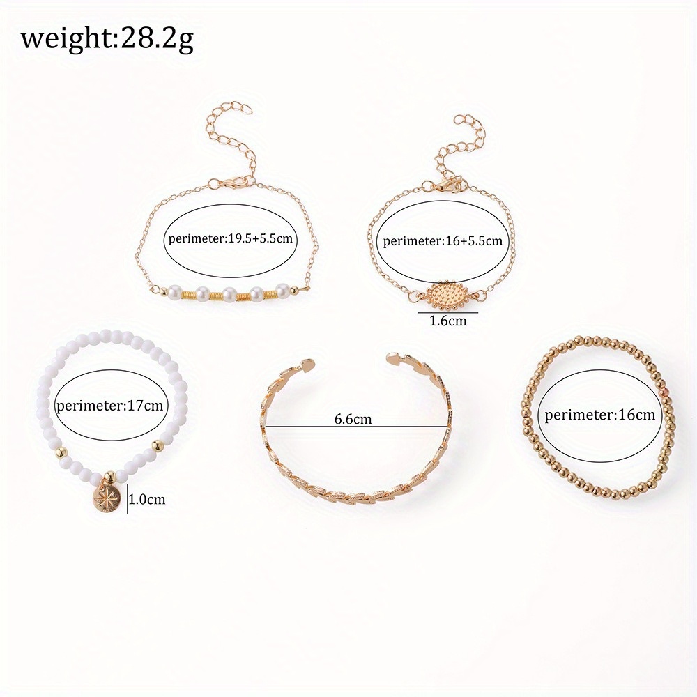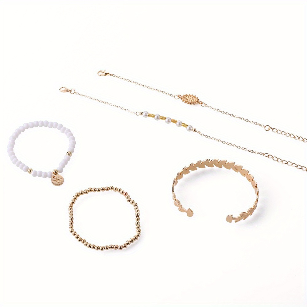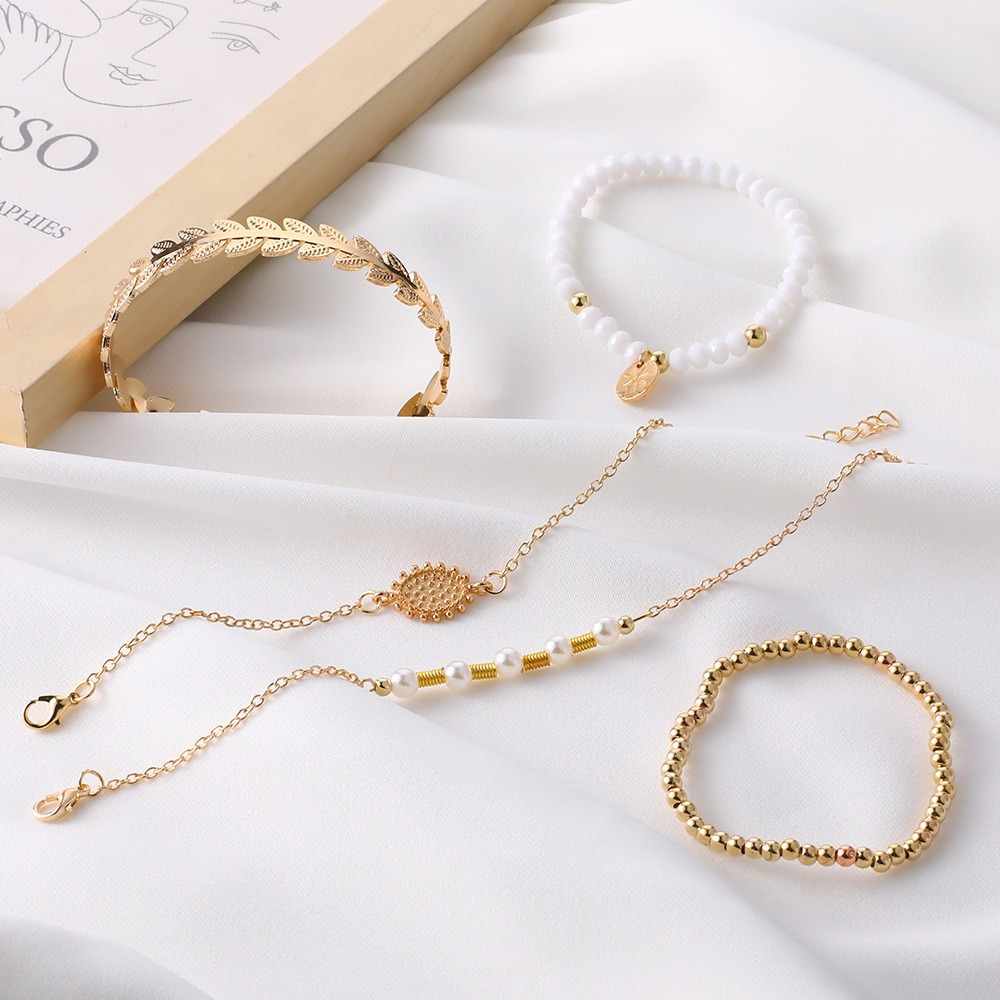 Personalized retro leaf opening adjustable beaded 5-piece bracelet set