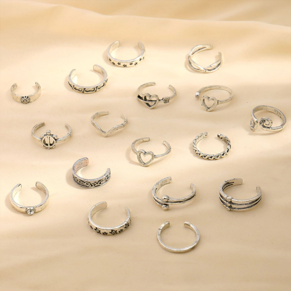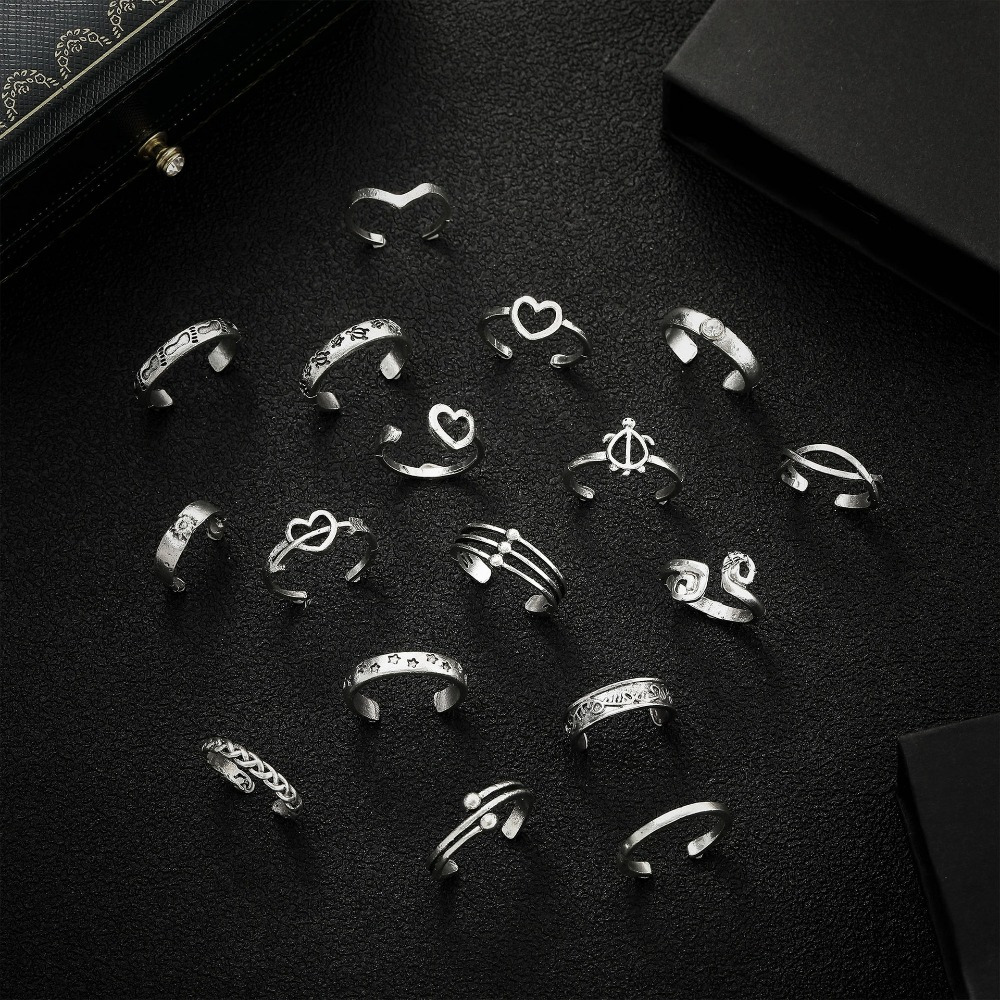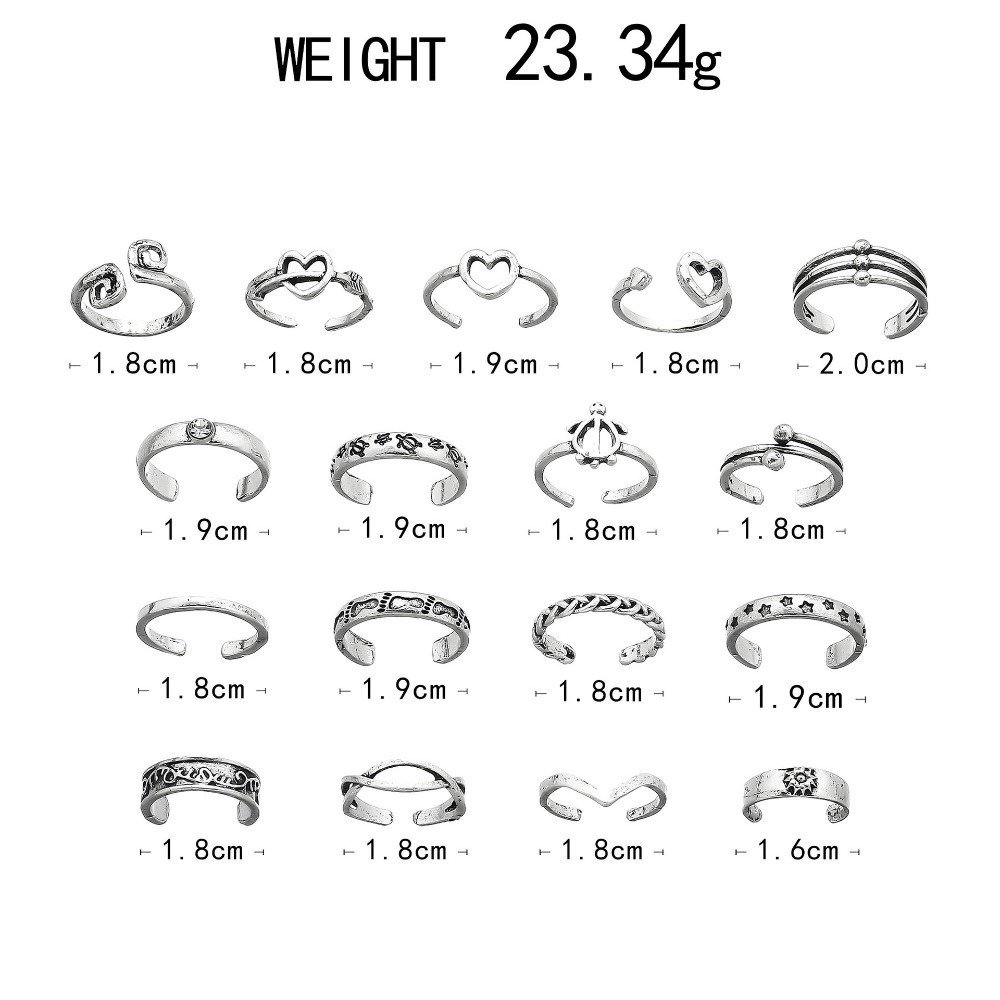 Personalized retro love hollow star turtle 17-piece set open foreign trade ring