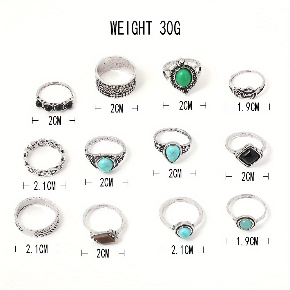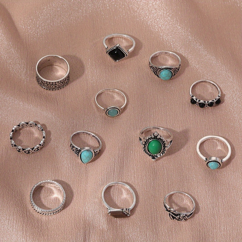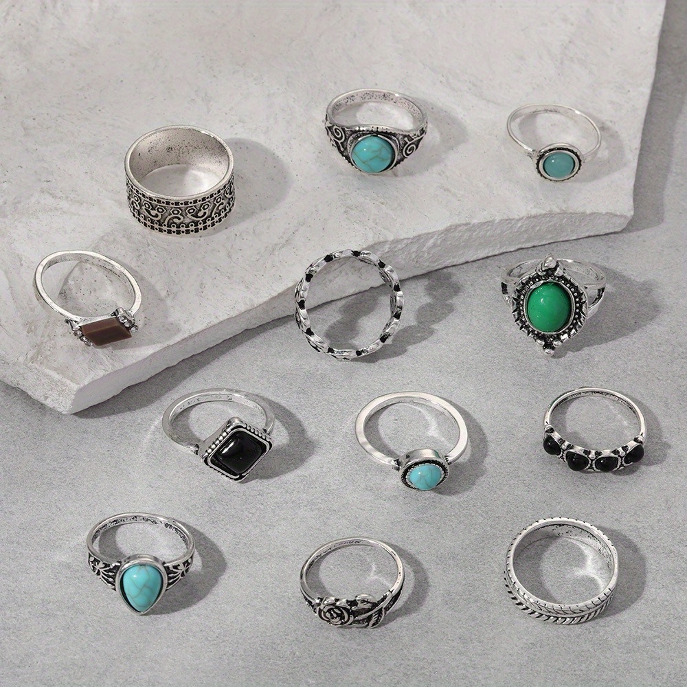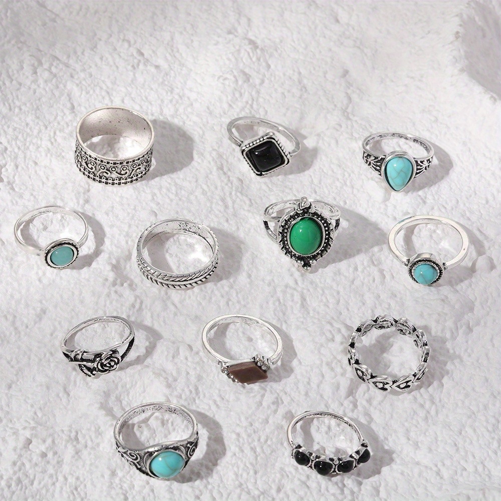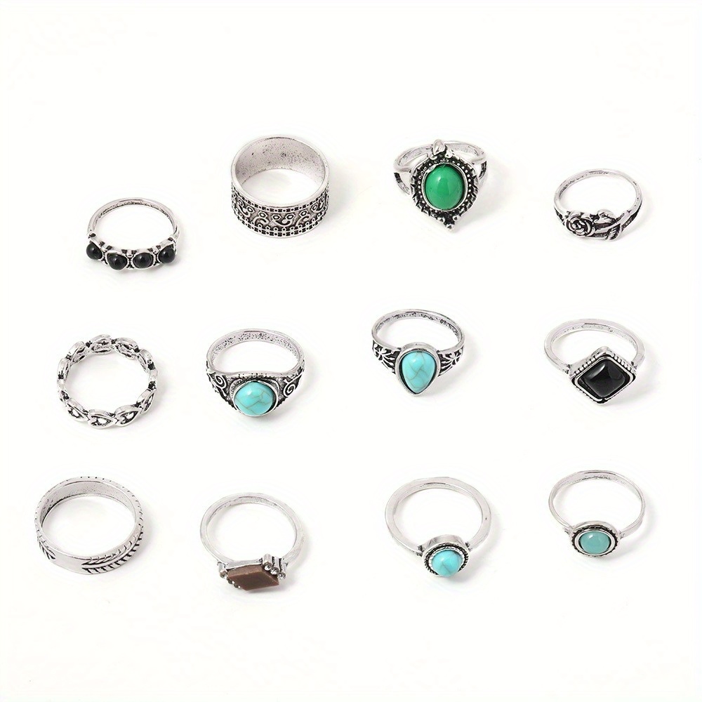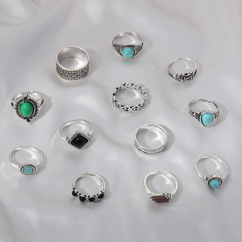Personalized retro rose turquoise 12-piece set ring jewelry