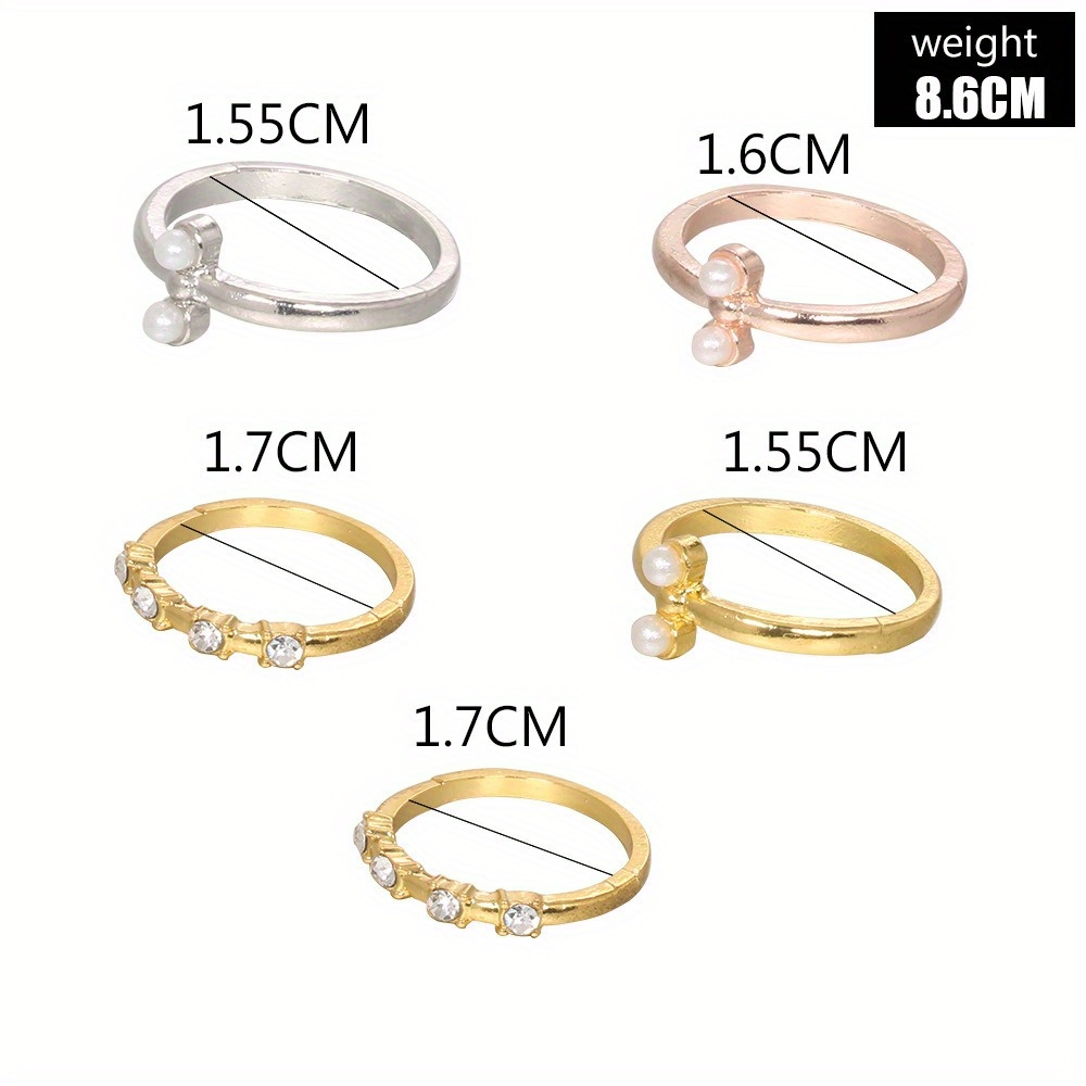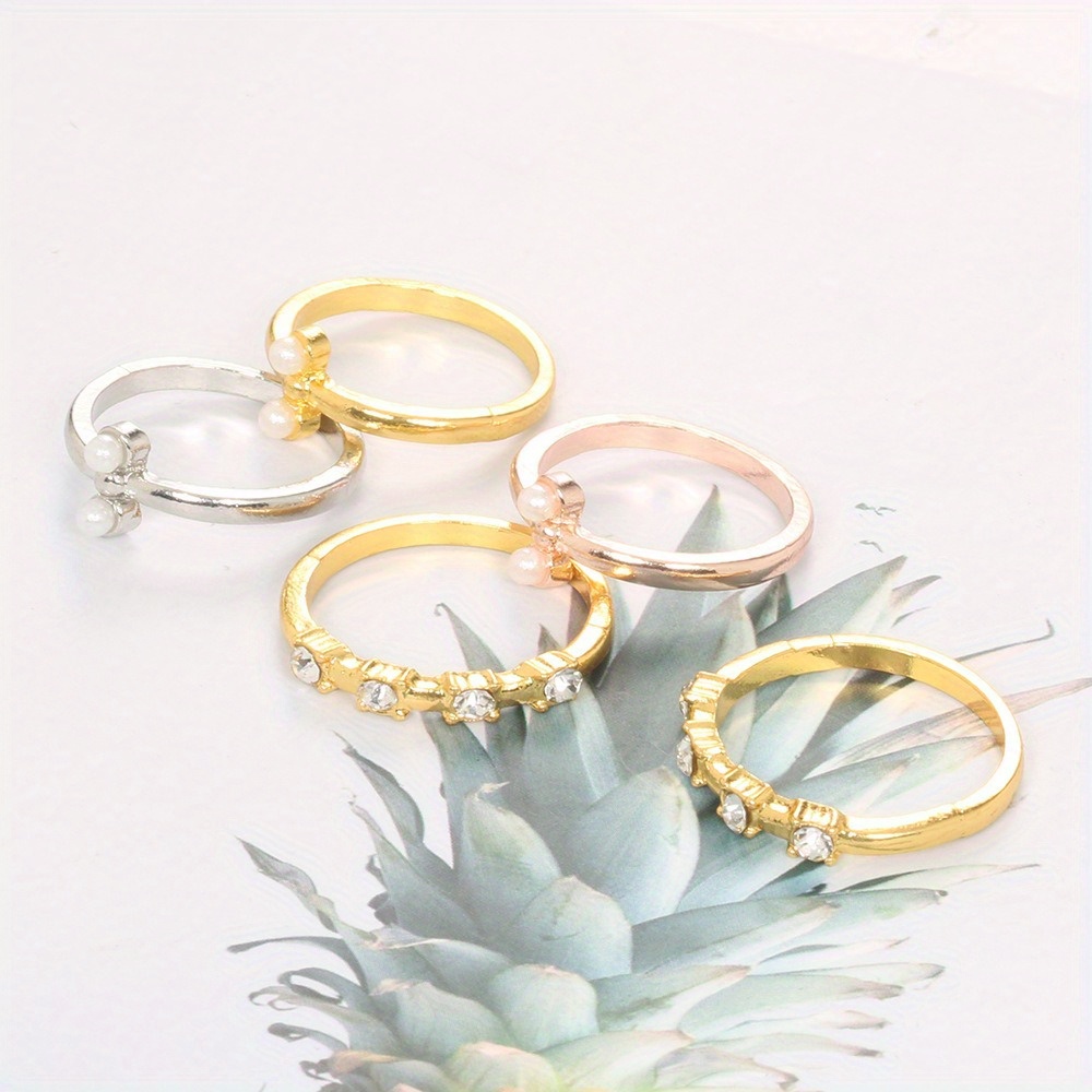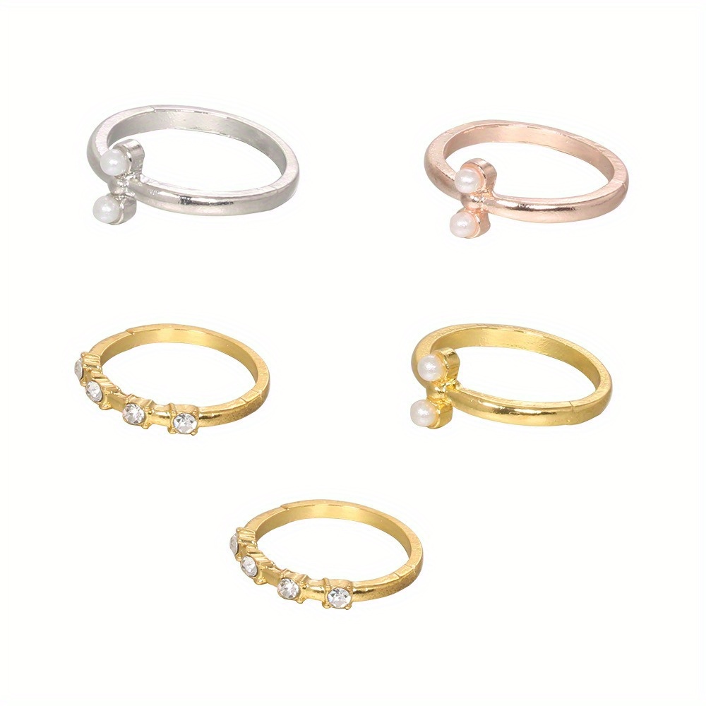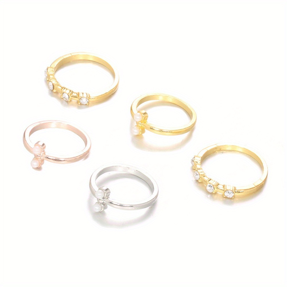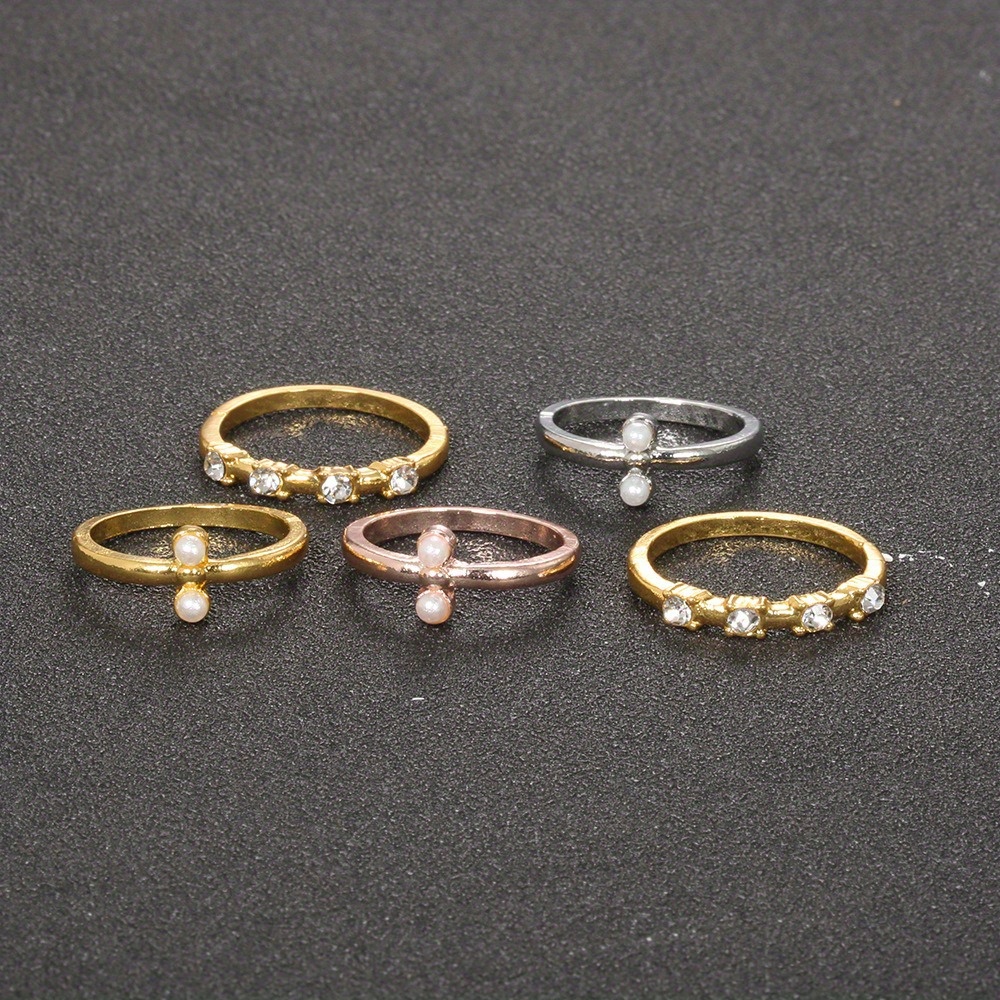 Personalized simple diamond-set pearl ring gold, silver, rose gold mixed color 5-piece set