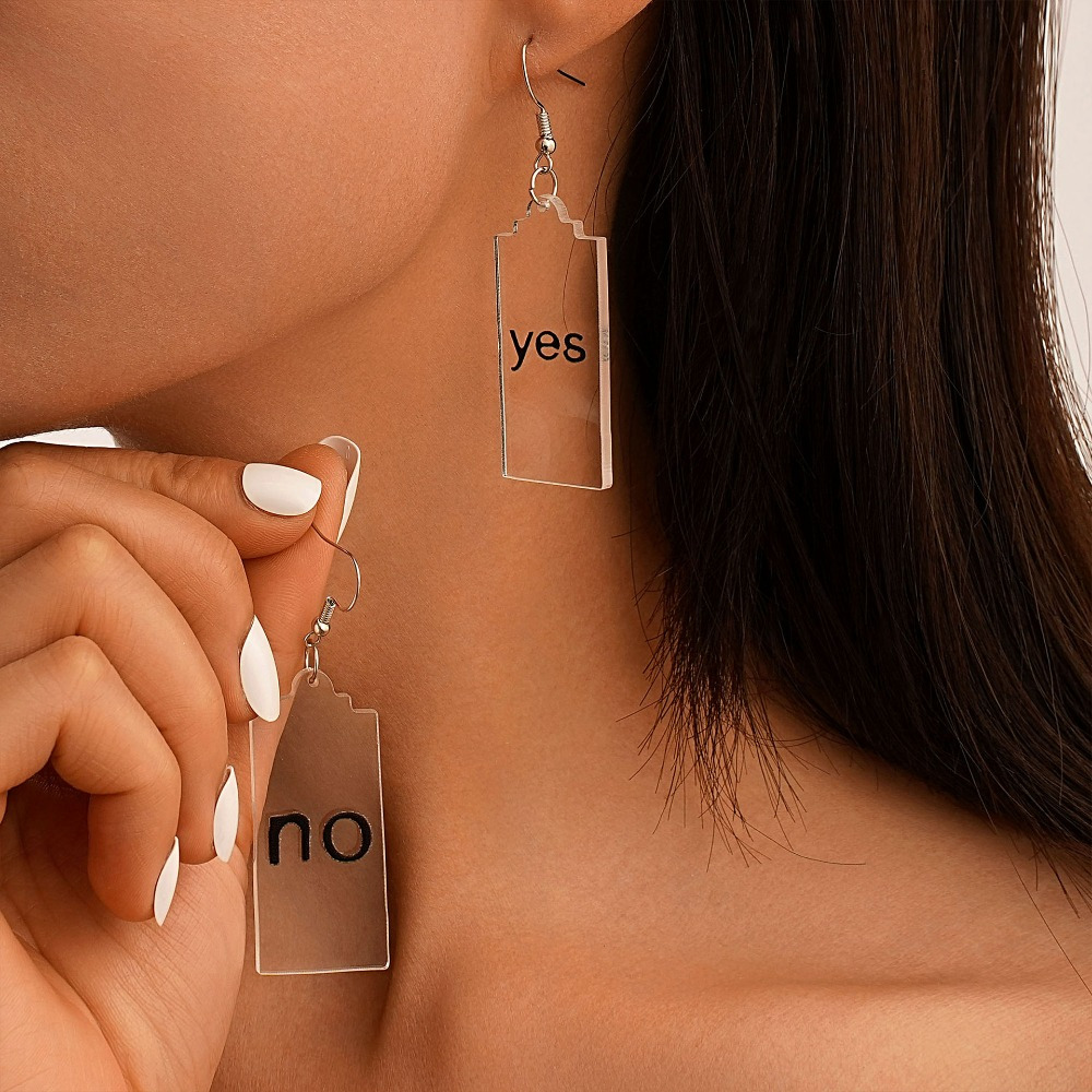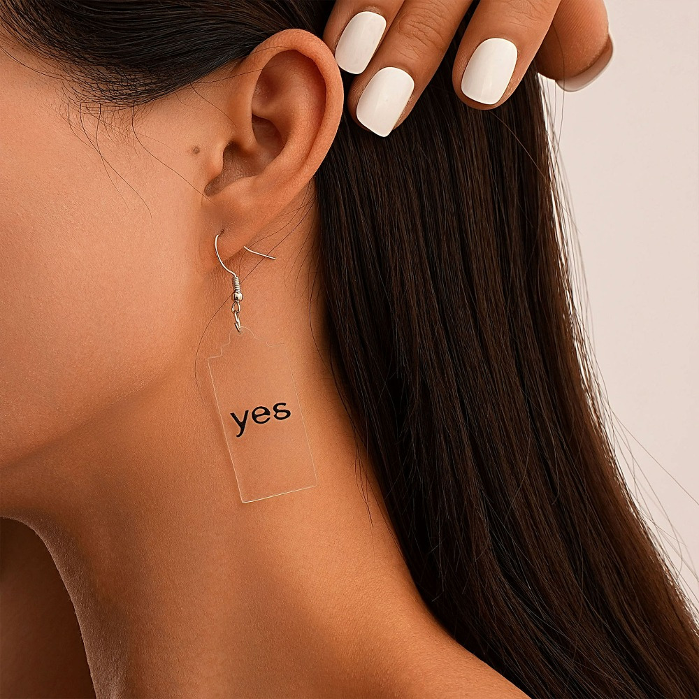 Personalized Transparent Acrylic English Letters Yes No Earrings Female
