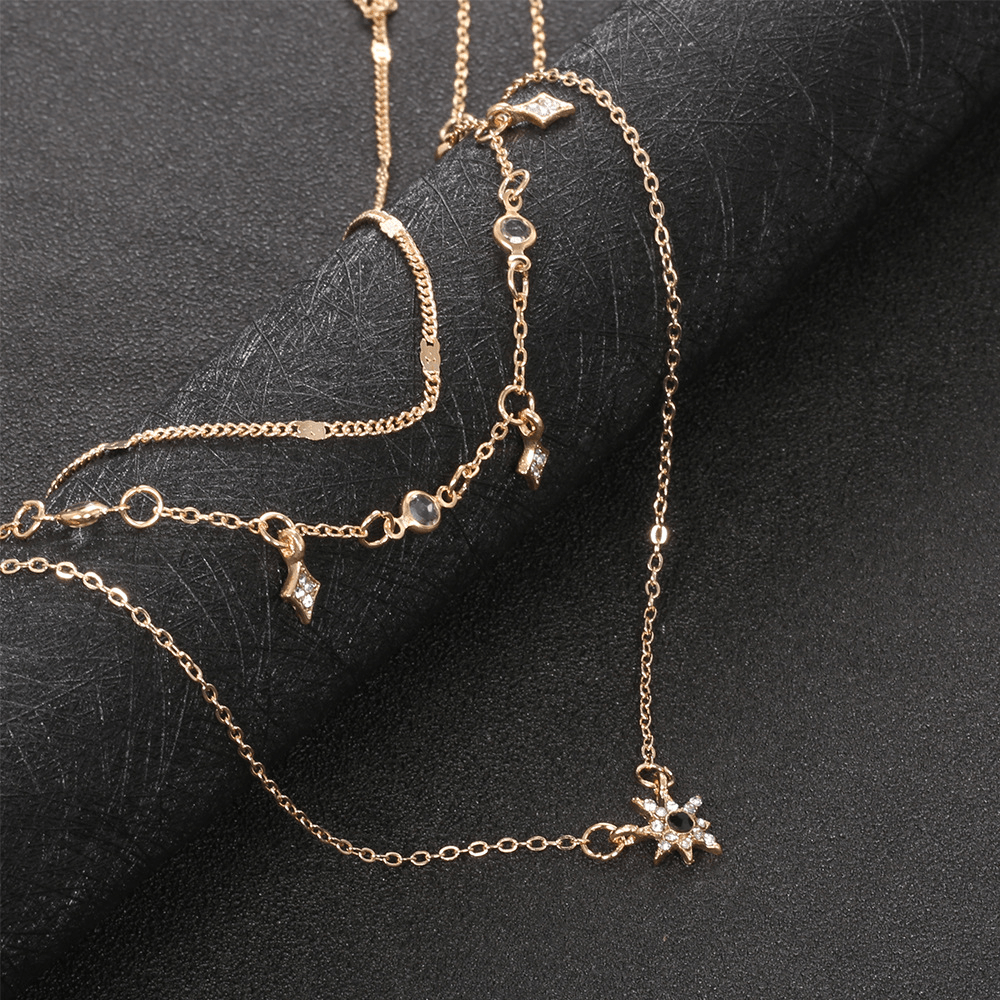 Popular Fashion New Women's Multi-layer Star Pendant, Neck Chain Handmade Necklace Combination Women's Elegant Pendant, Suitable for All Seasons Fashion Accessories, Suitable for Daily Wear, Perfect Choice for Wedding Banquets