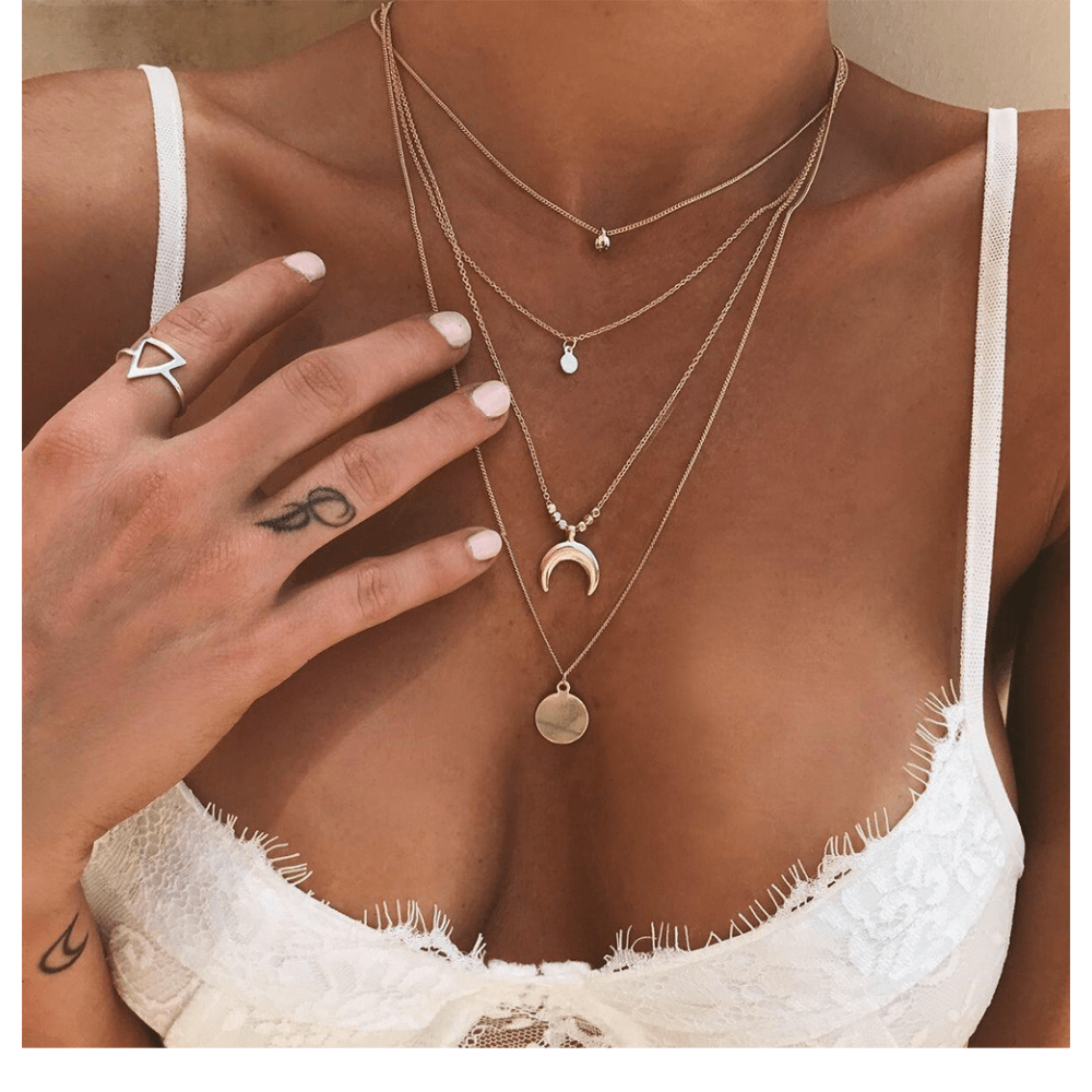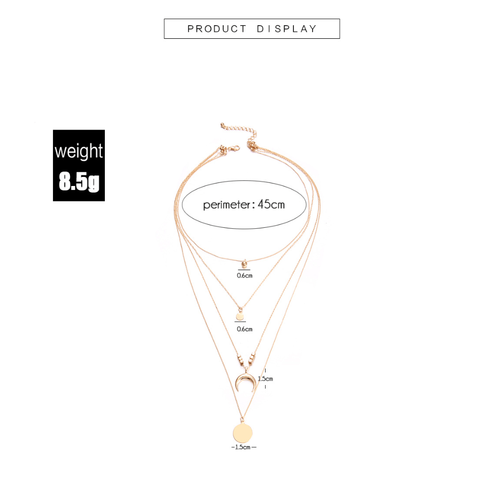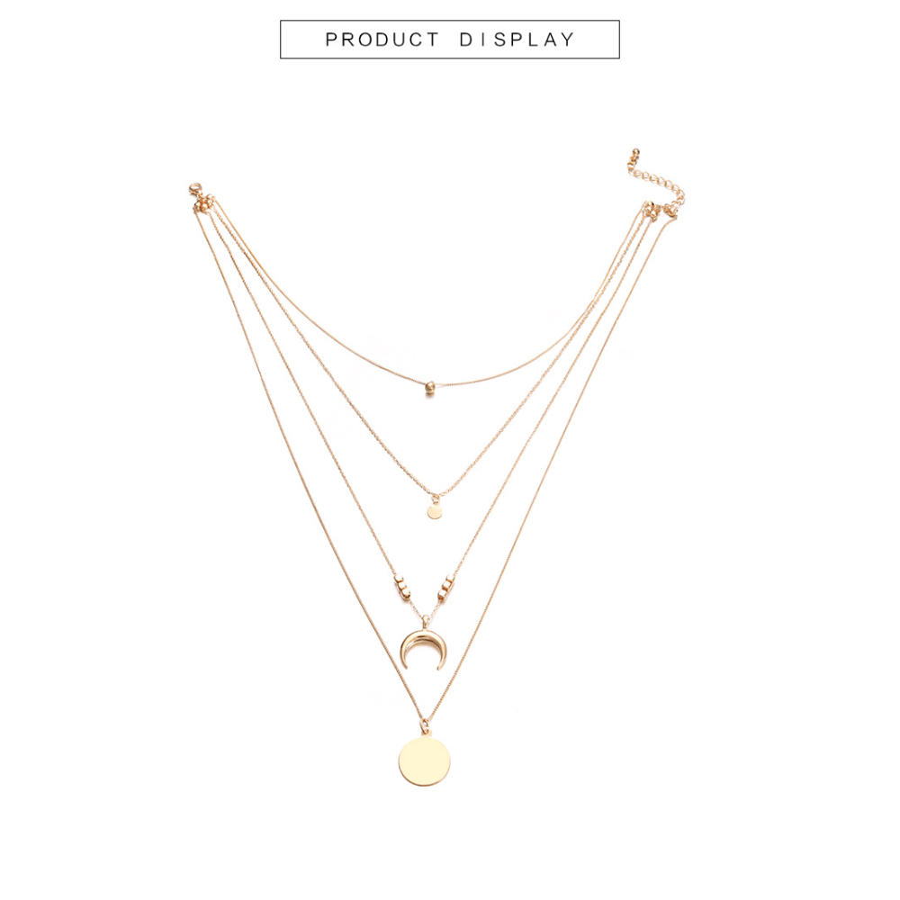 Popular Fashion Personalized New Multi-layer Moon Disc Pendant Women's Necklace