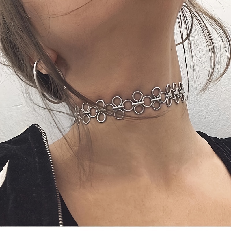 Punk Girl Weave Geometric Chain Metal Collar Necklace Music Festival Party Accessories