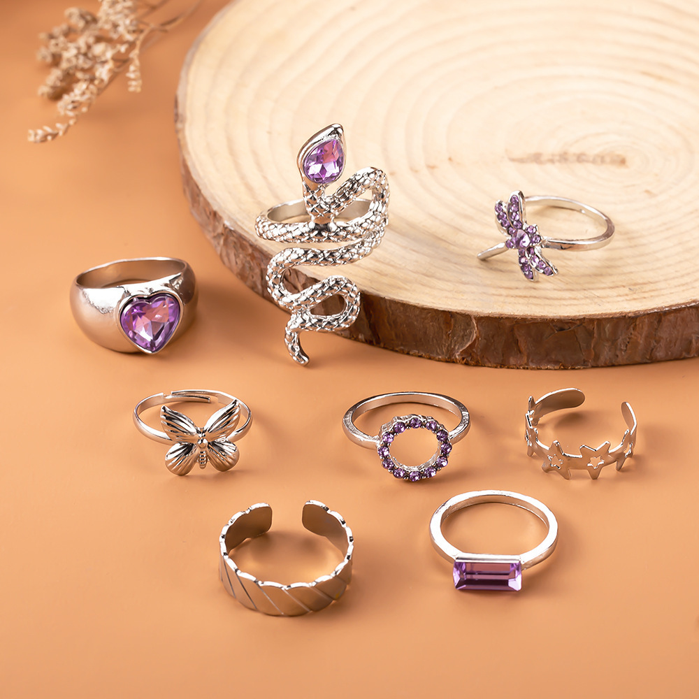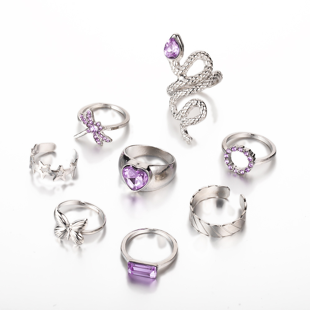 Purple Butterfly Star Ring Set, Love Snake Dragonfly Diamond 8-piece Ring Set Female