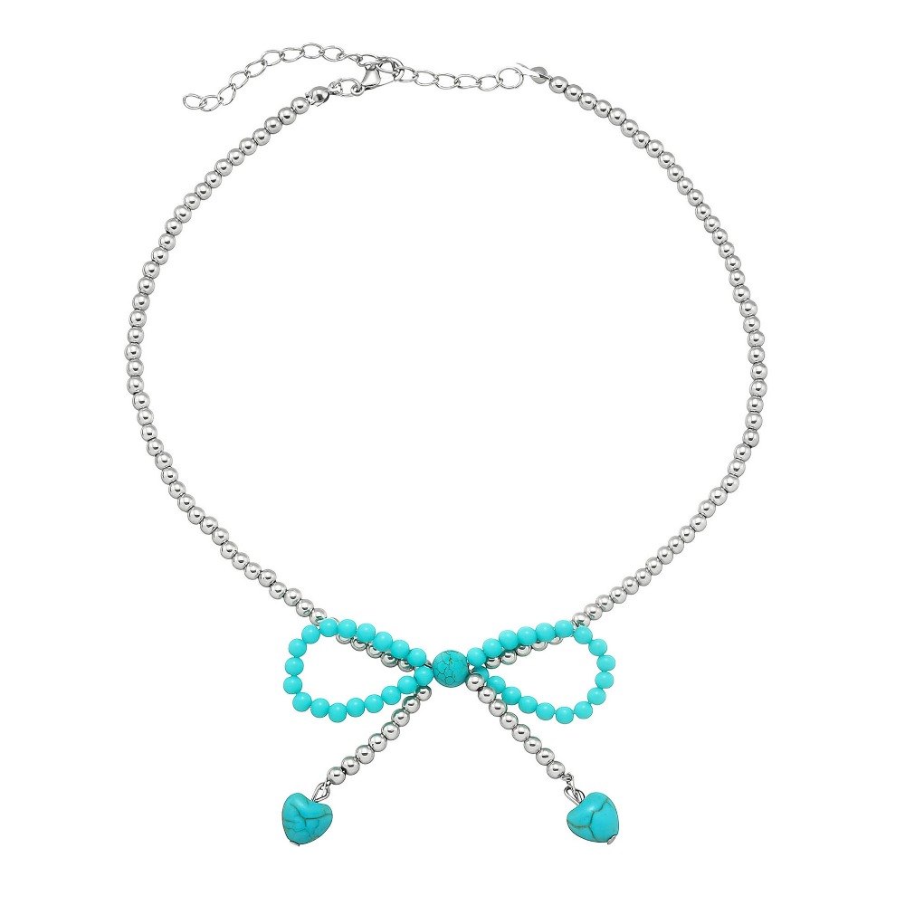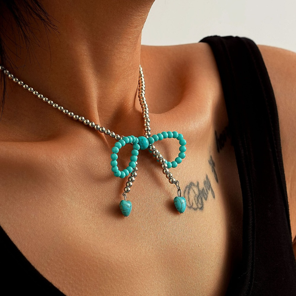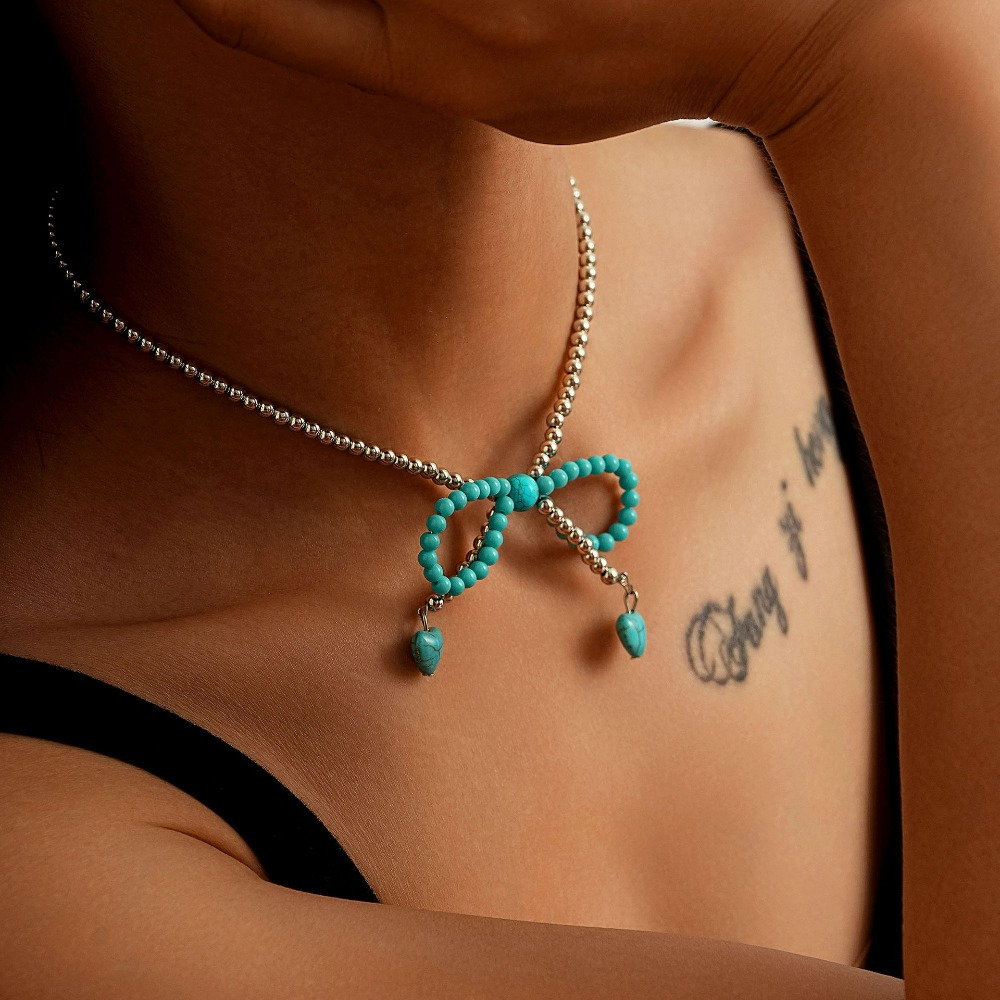 Retro Bow Love Turquoise Collarbone Chain European and American Necklace Wholesale