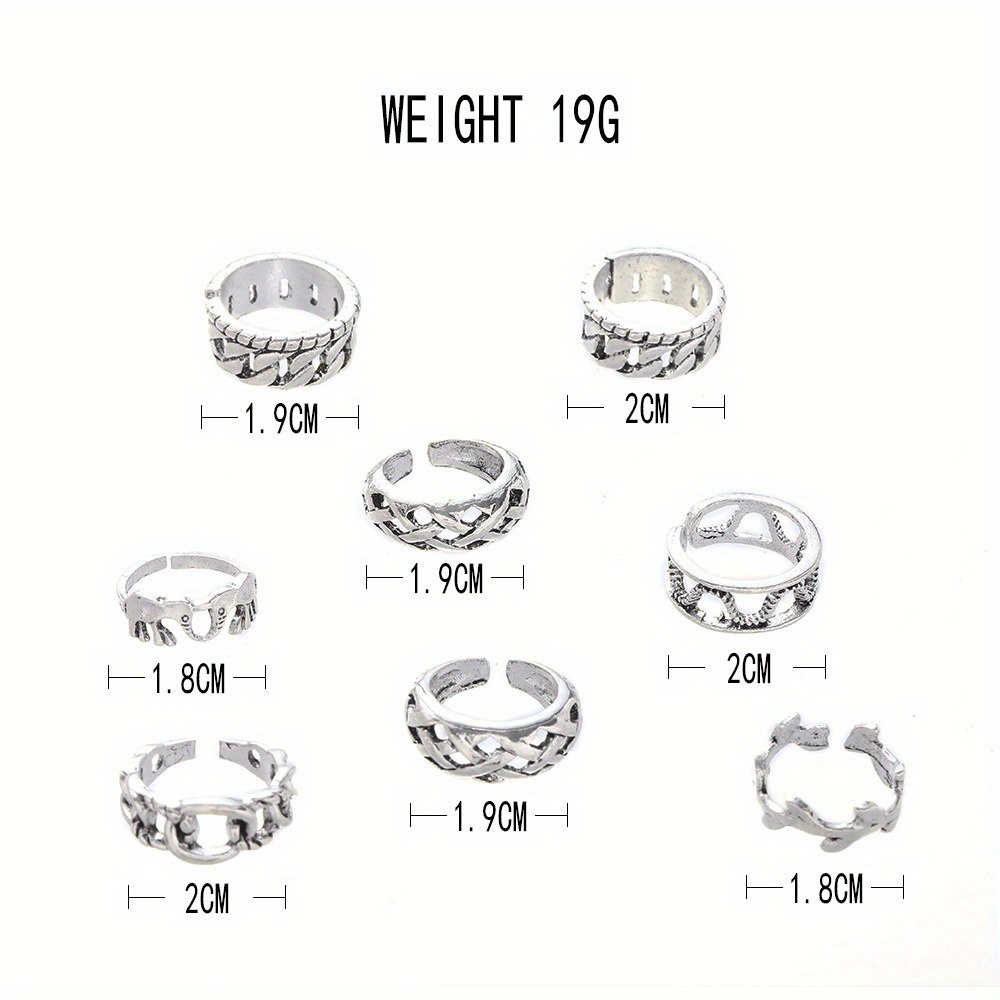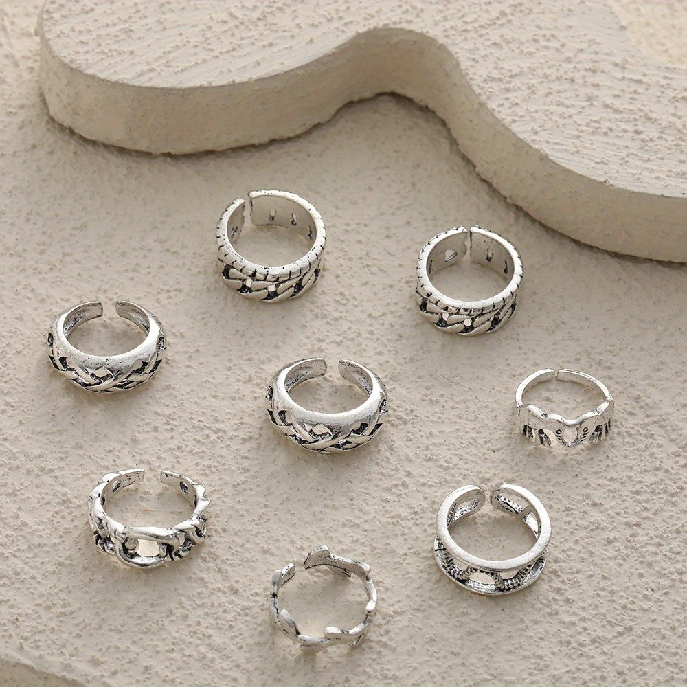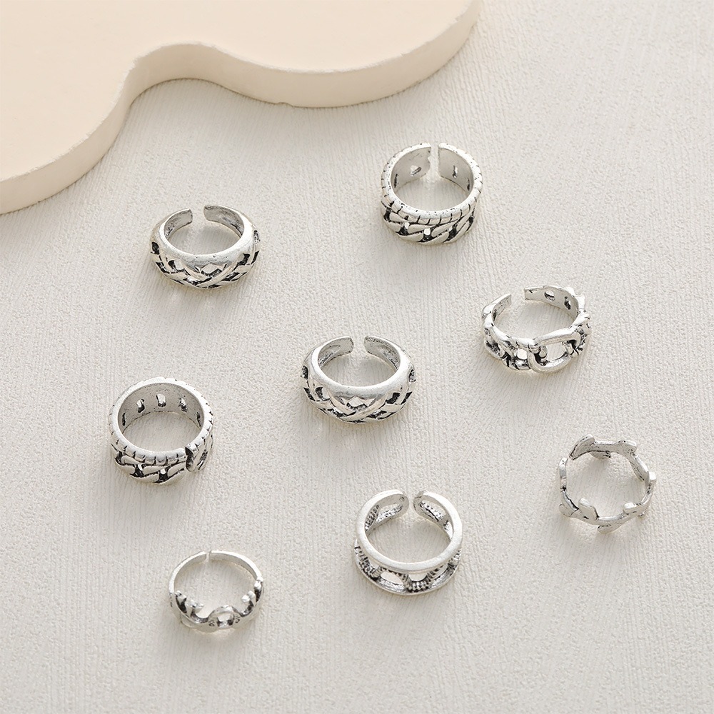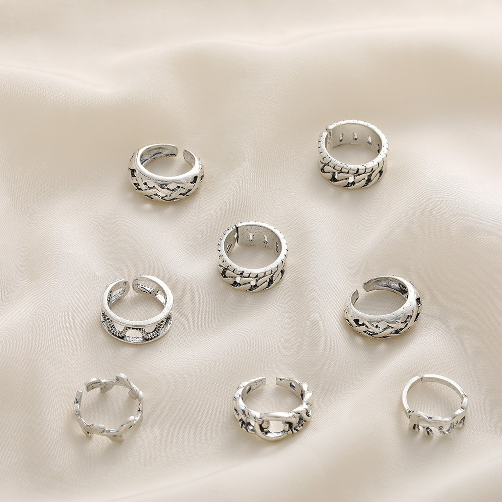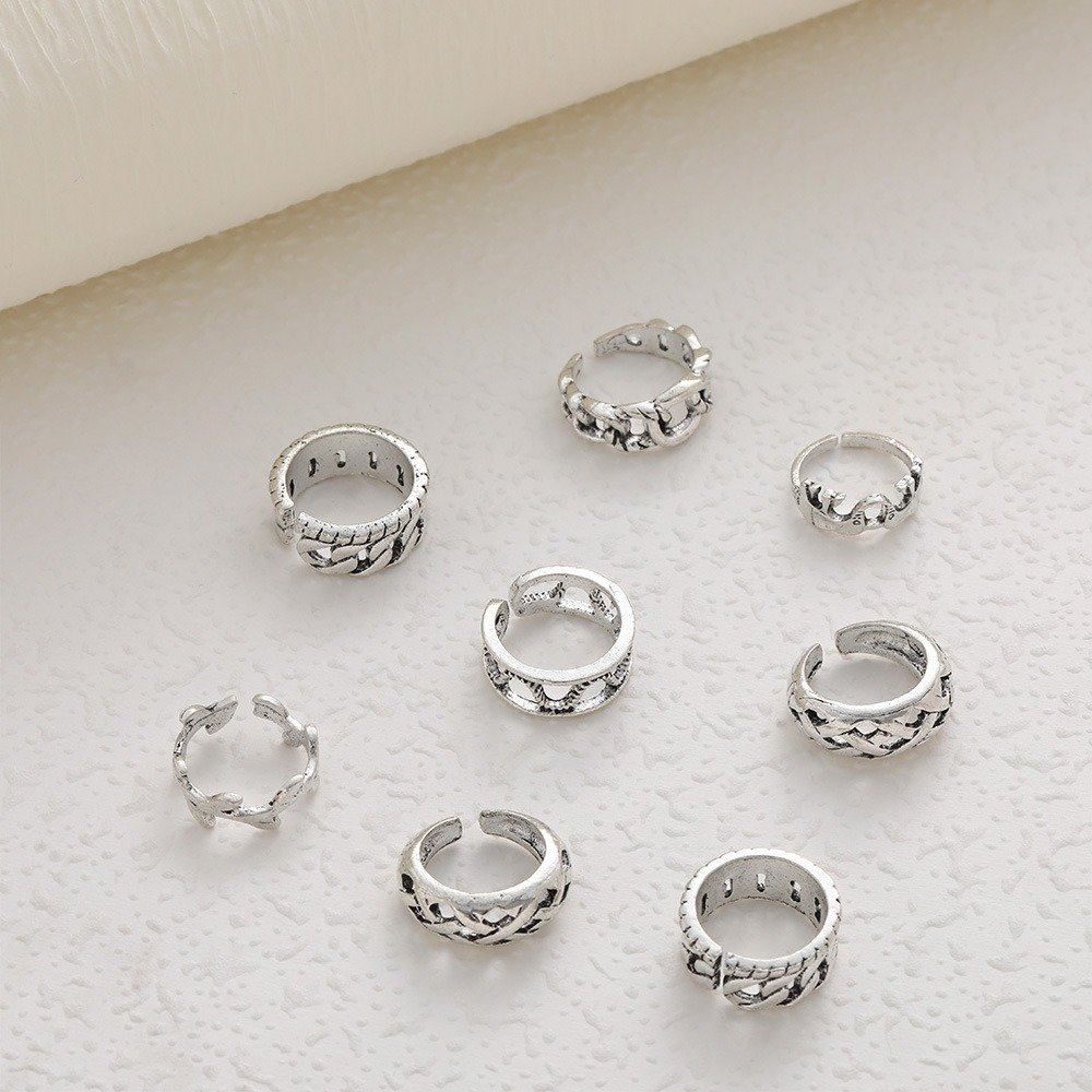 Retro Personality Elephant Leaf Hollow Opening 8 Piece Set Ring Jewelry