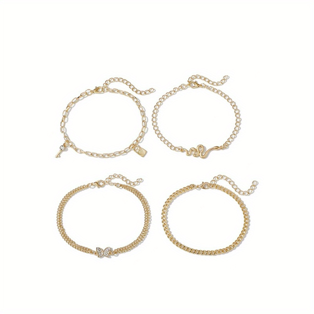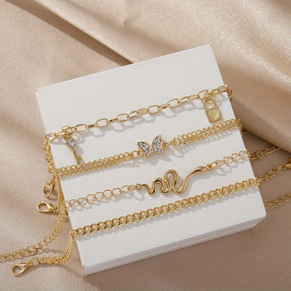 Retro personality multi-element snake full diamond butterfly lock pendant combination, foot decoration