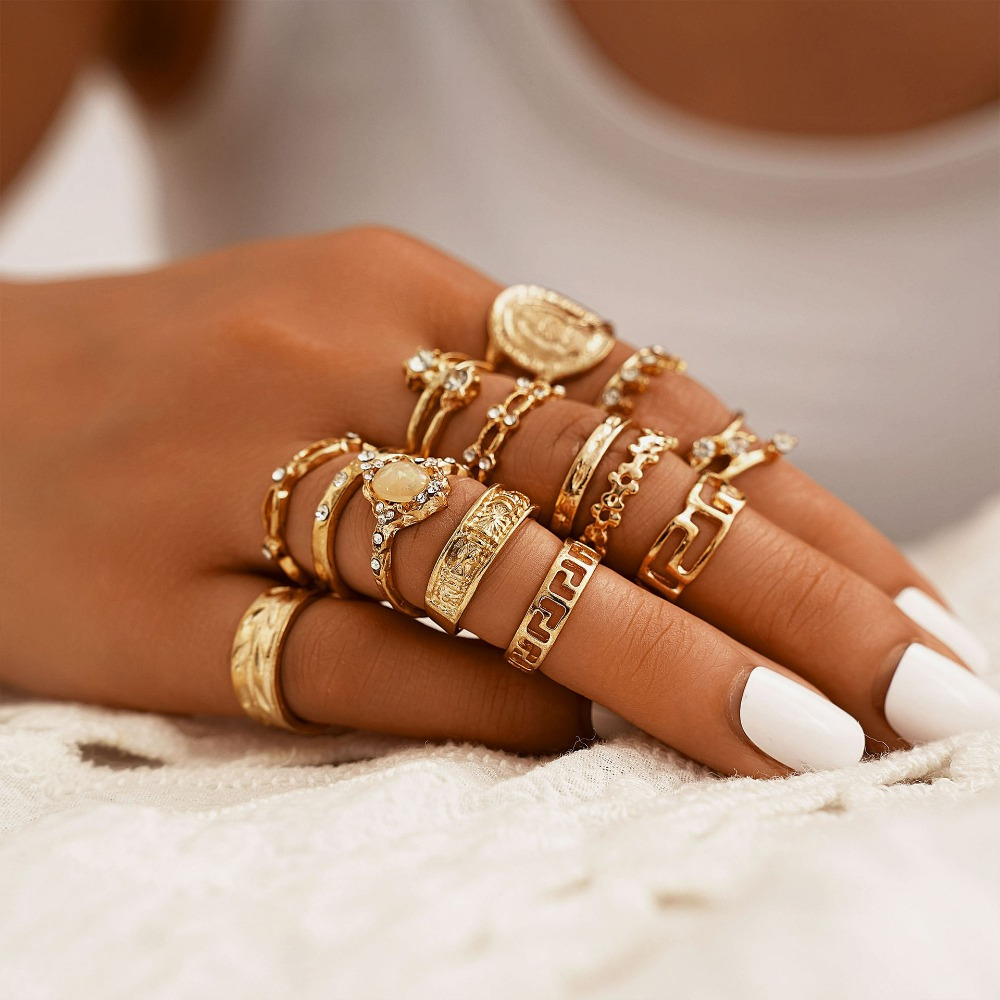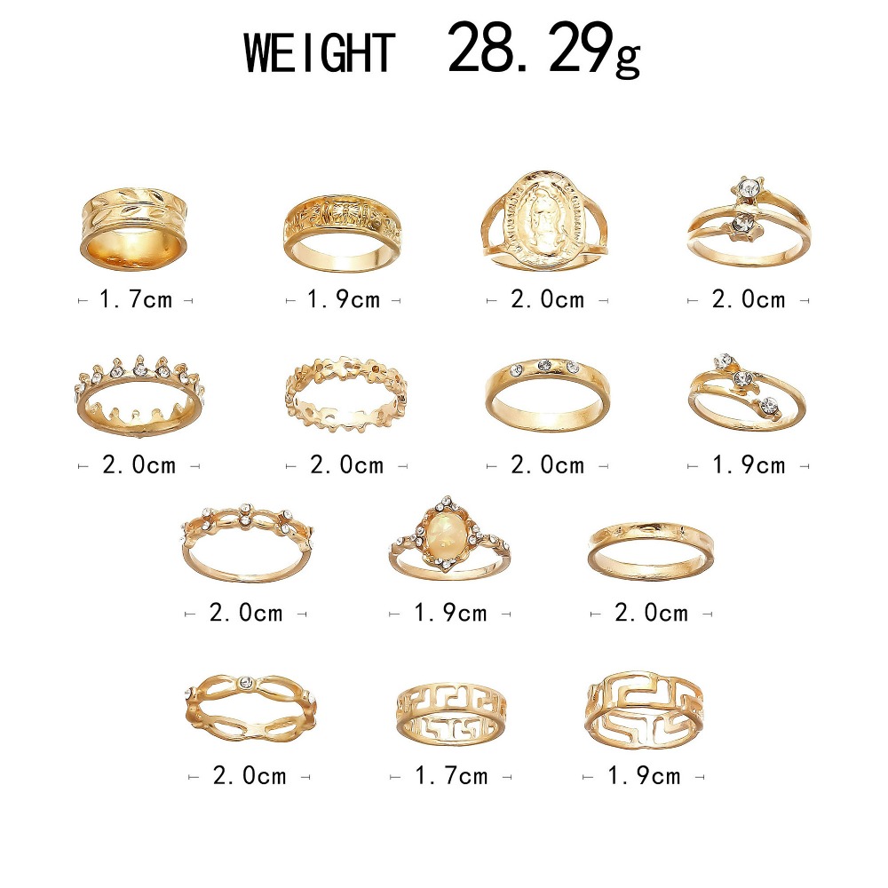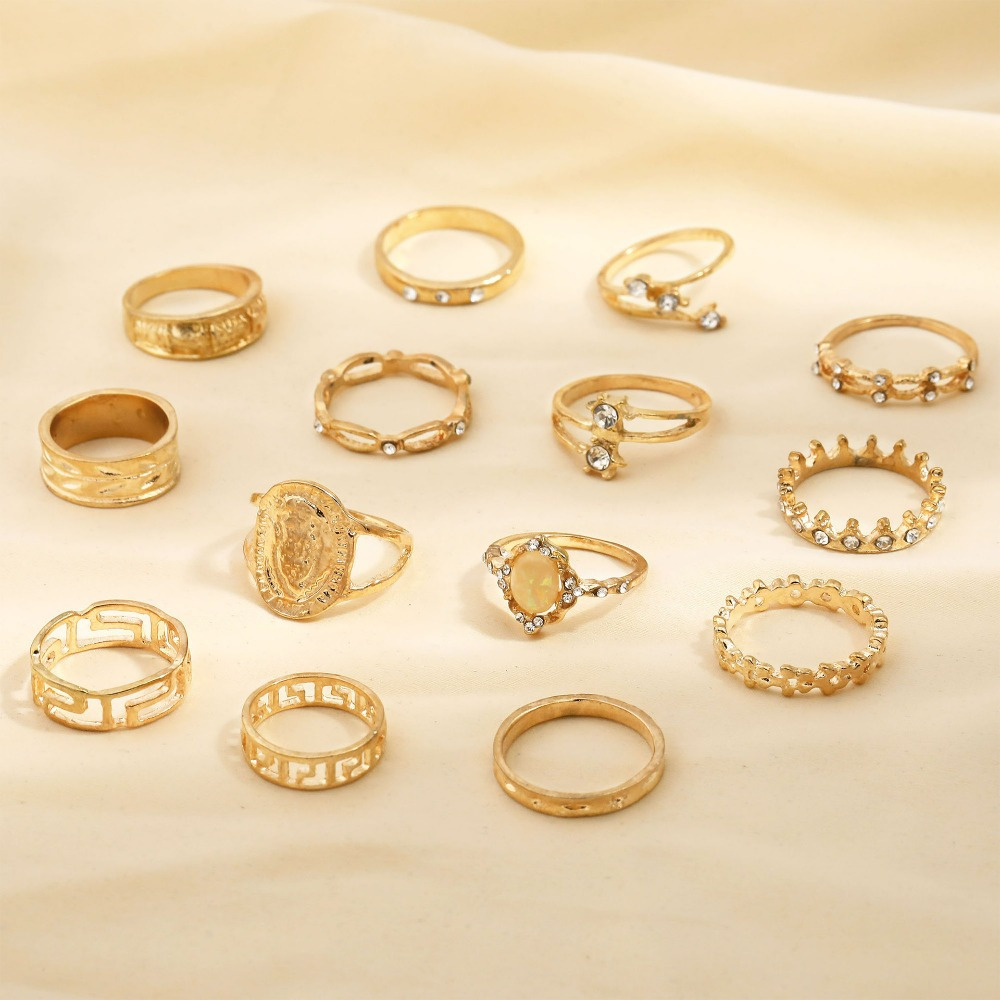 Retro Personality Point Diamond Hollow 14 Piece Set Jewelry