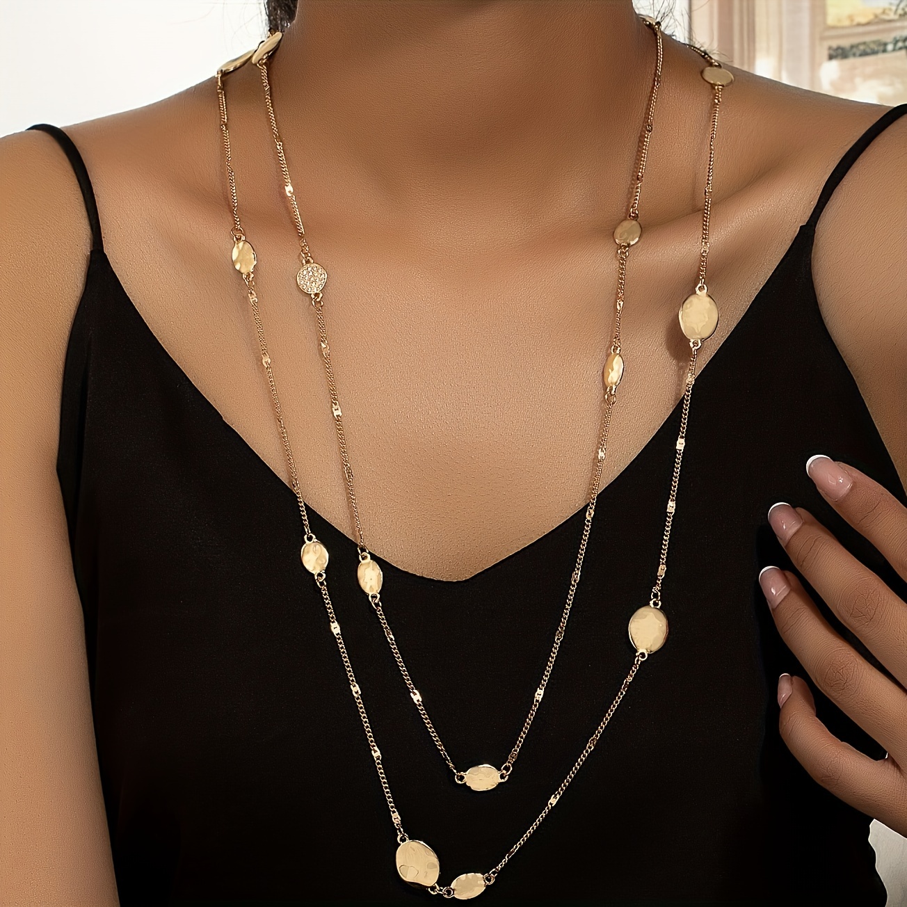 Retro simple metal style long necklace sweater chain, can be worn alone or stacked
