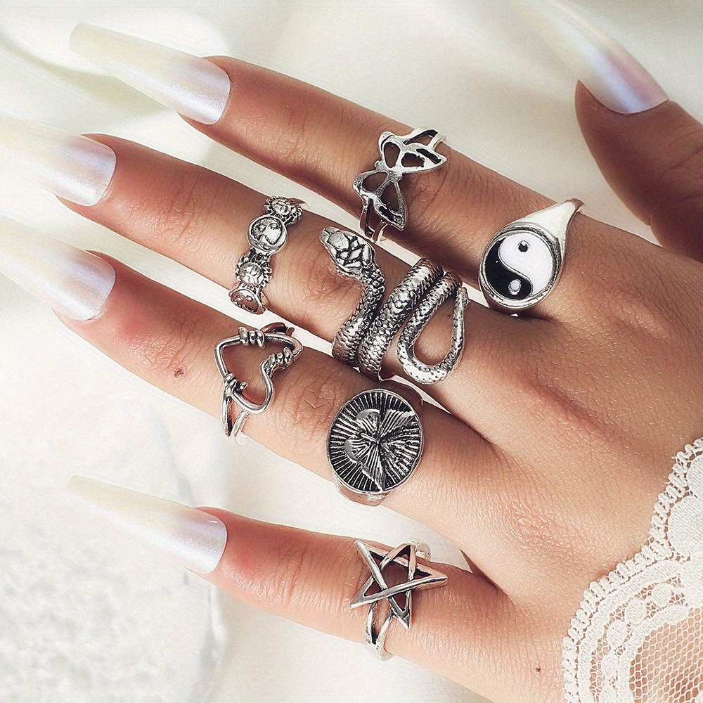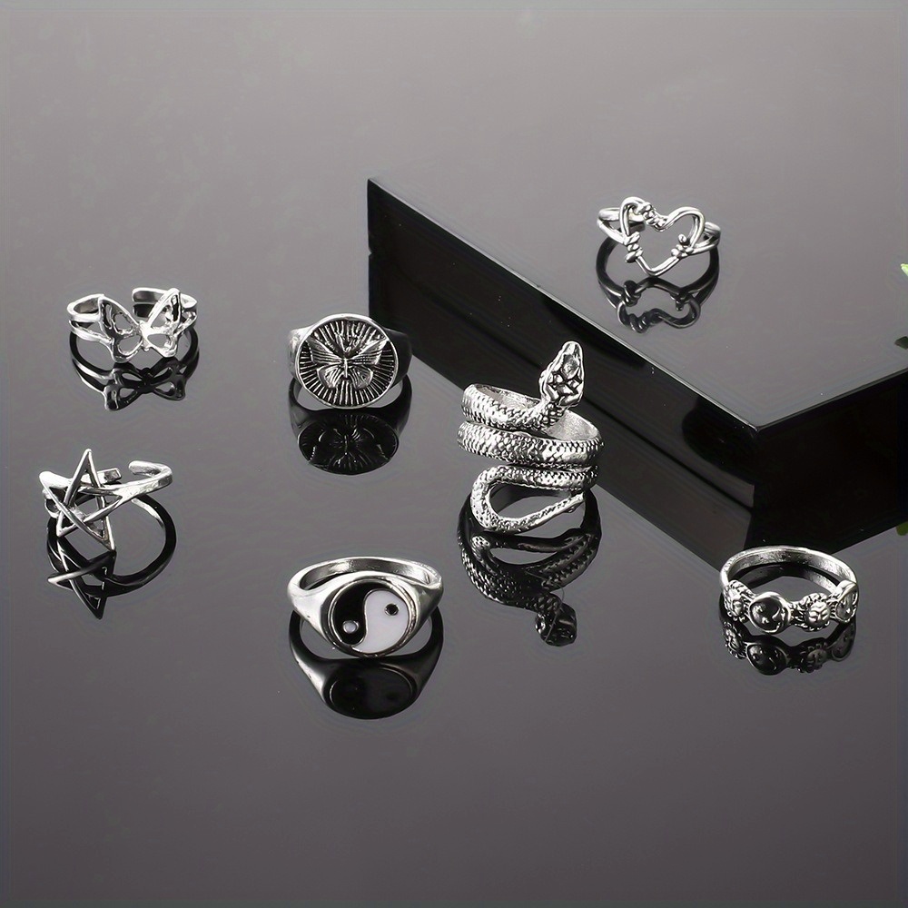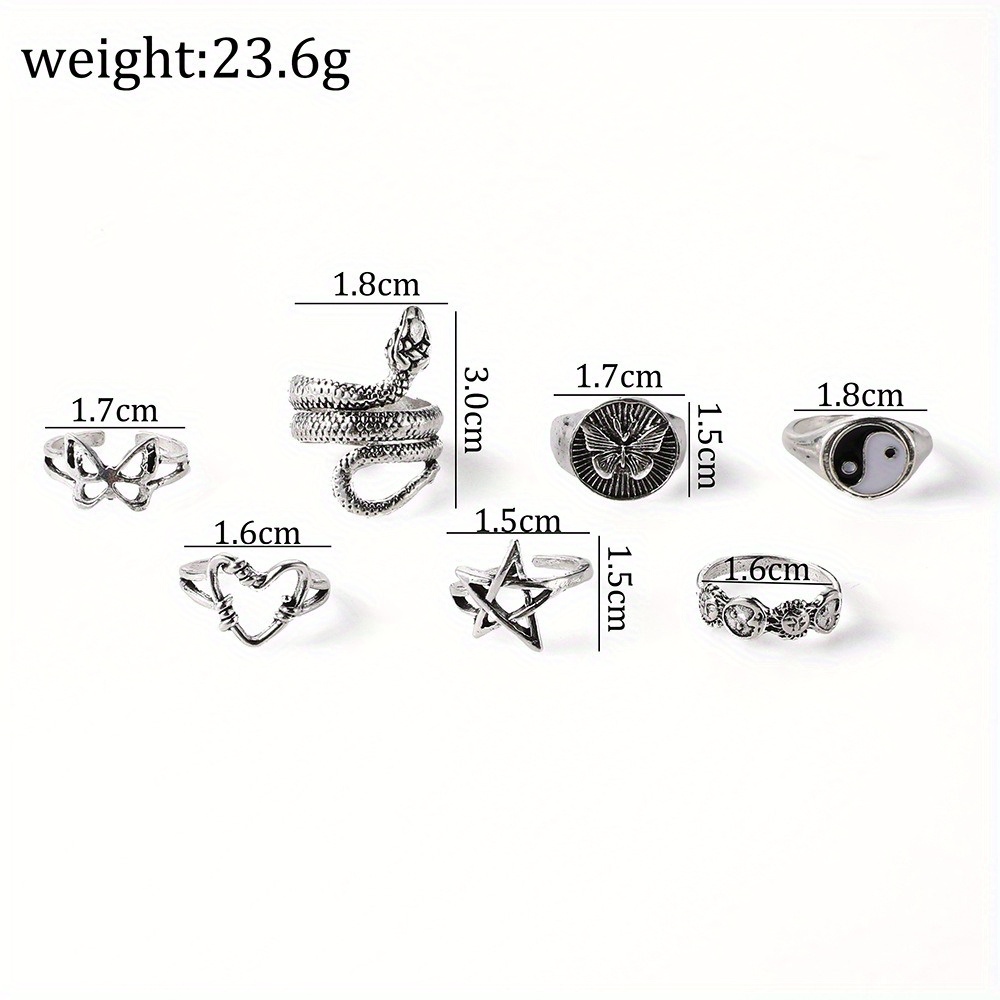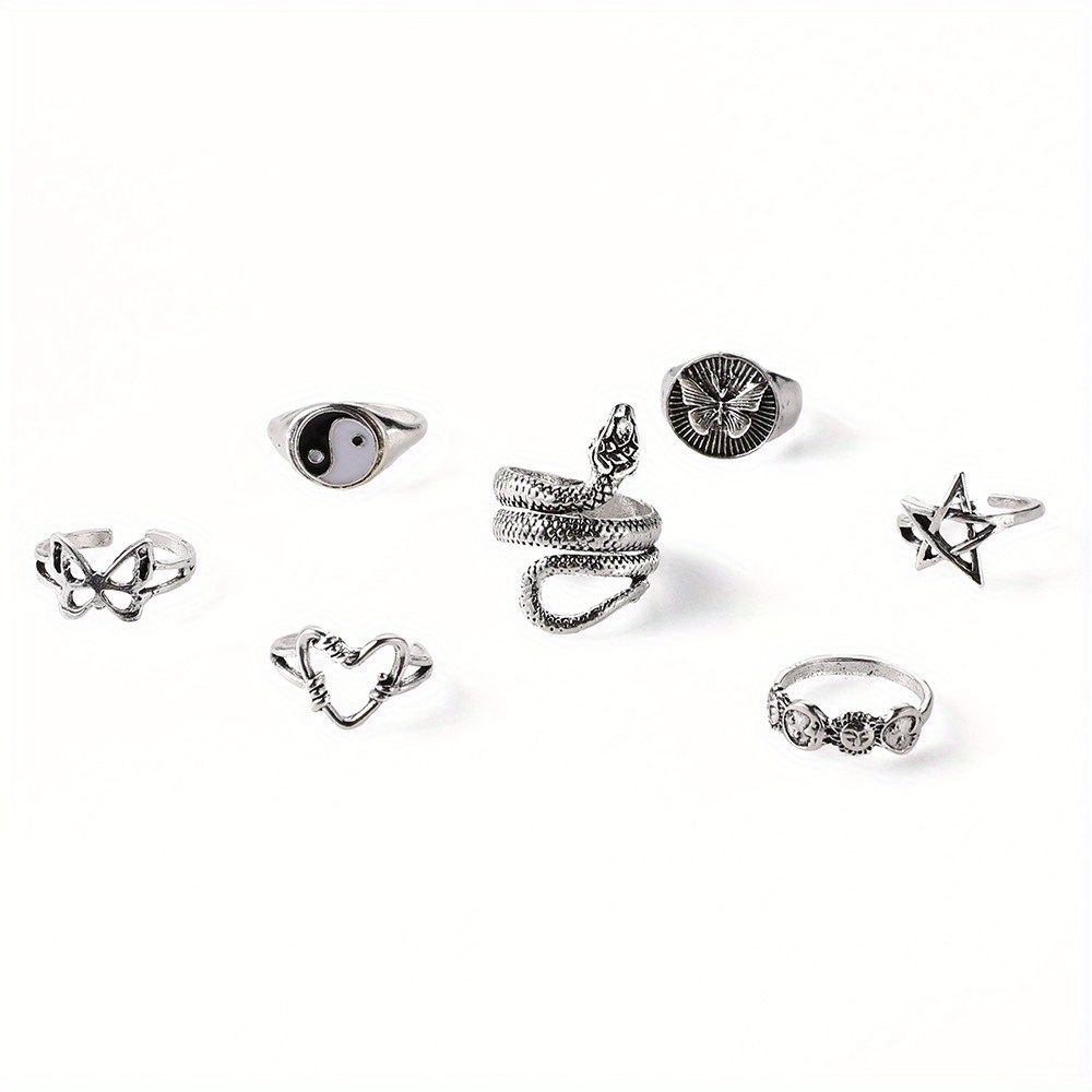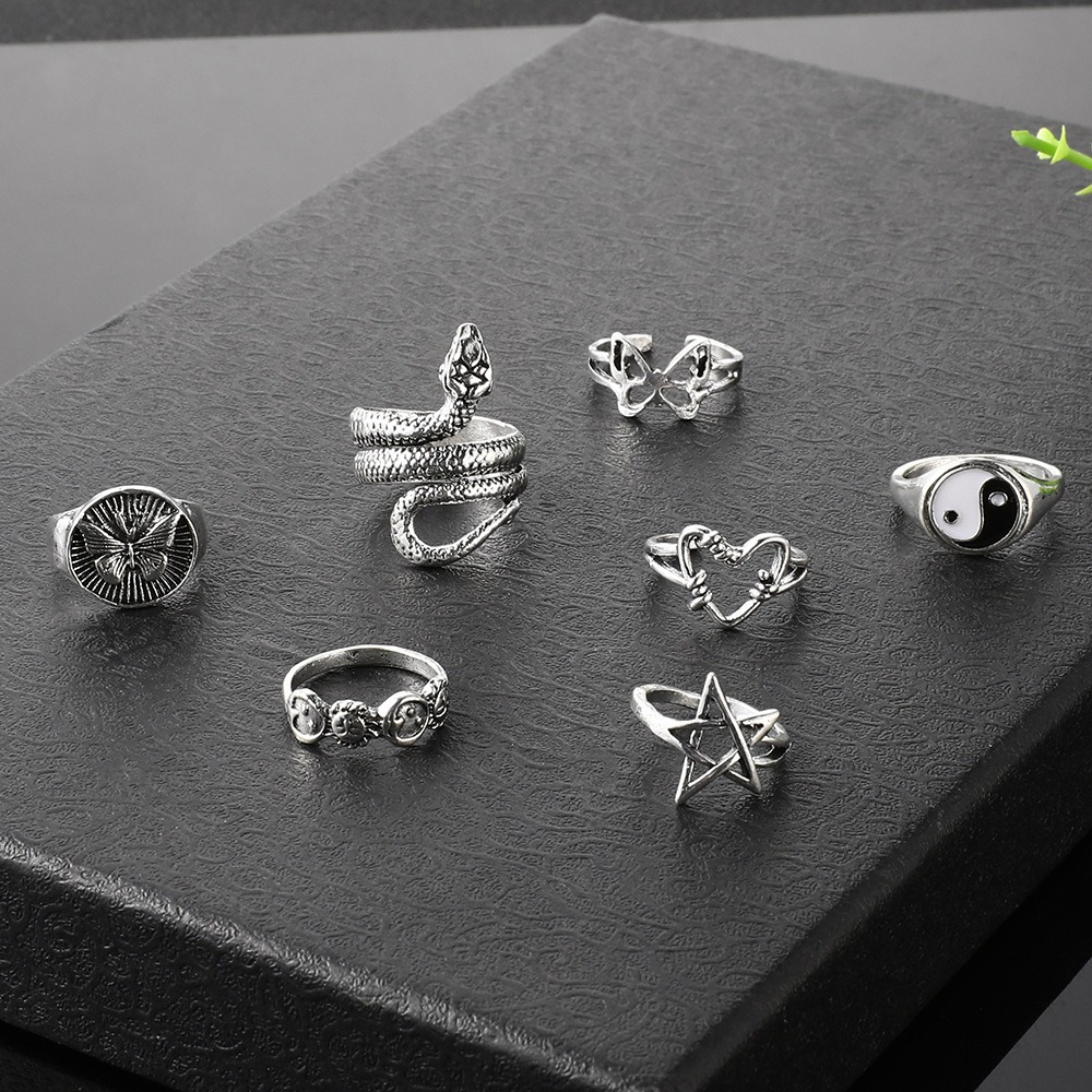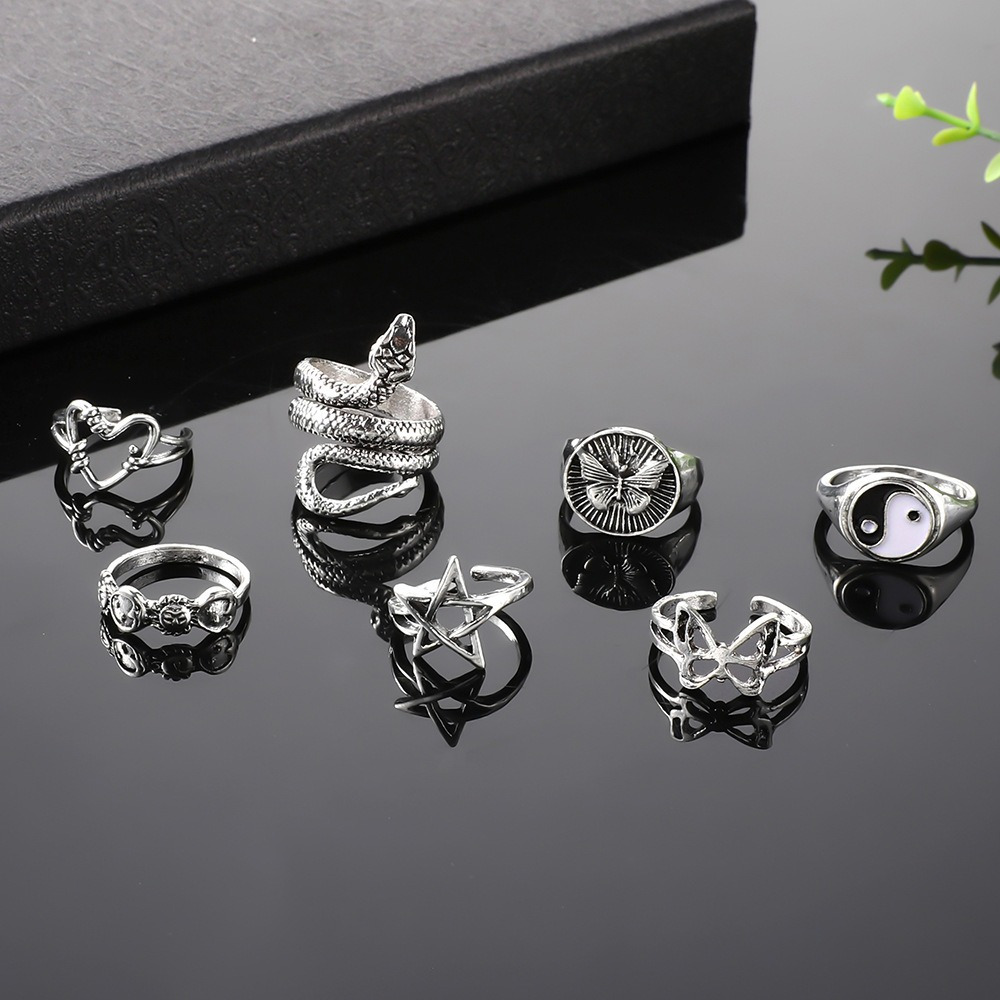Retro style butterfly love snake-shaped five-pointed star hollow 7-piece set ring
