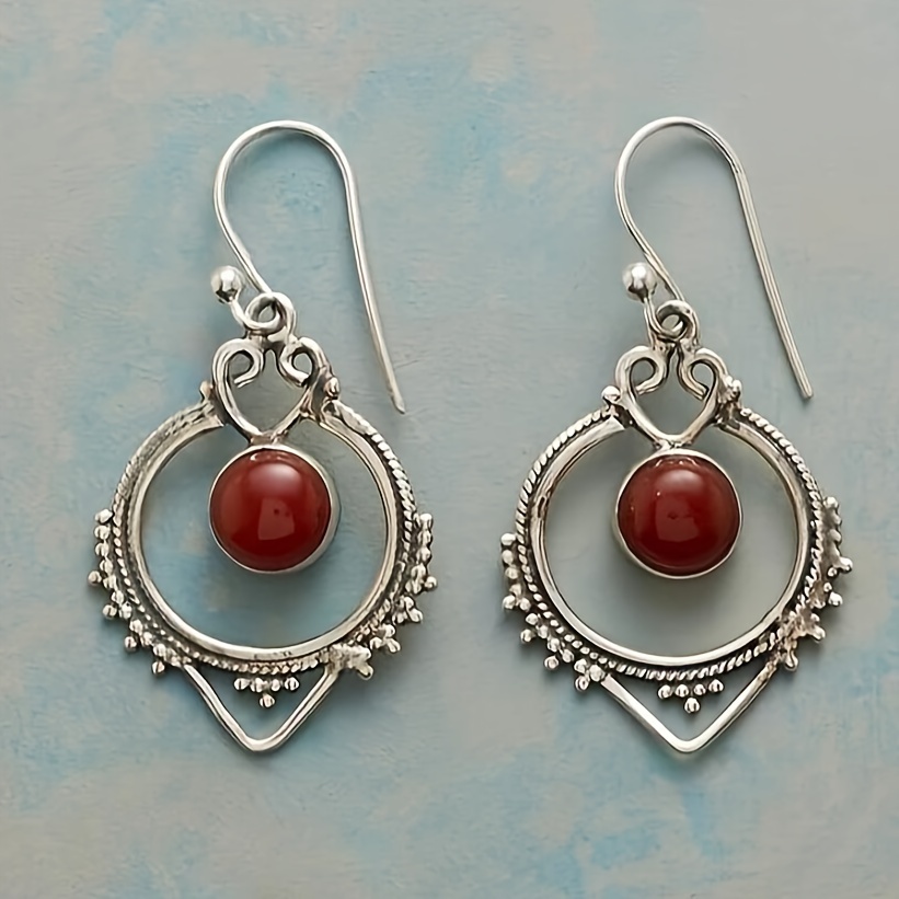 Retro-style silver synthetic gemstone stud earrings, zinc alloy iron earrings, elegant hollow design, suitable for daily wear