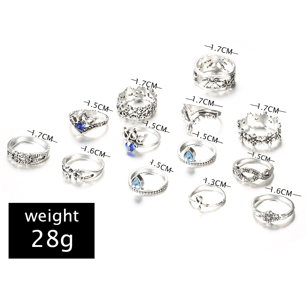 Retro Water Drop Pony Engraved Unicorn Lotus Hollowed Out with Diamonds 13-piece Set Women's Ring Set