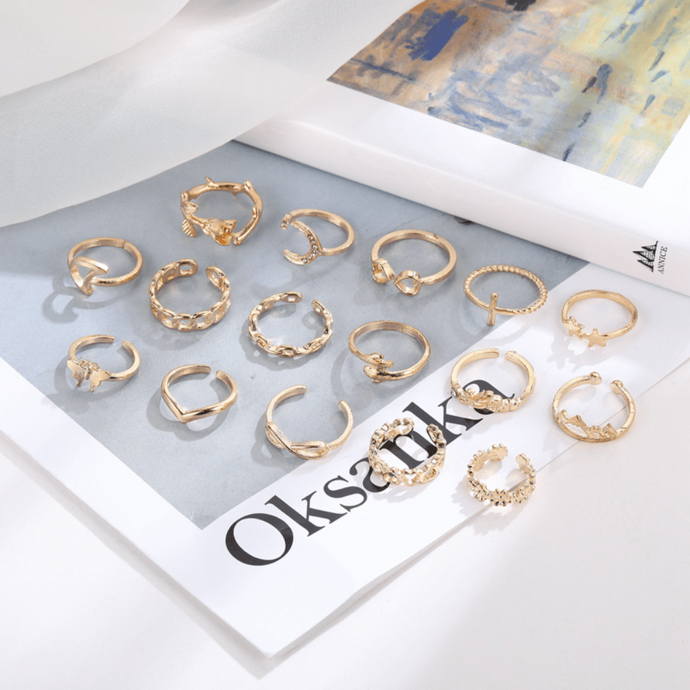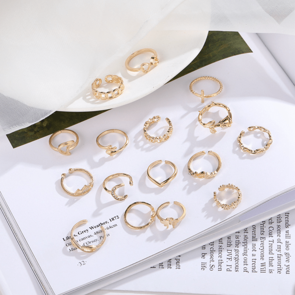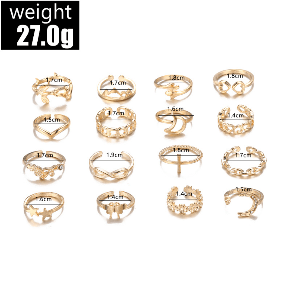 Rose Ring, Simple Personality, Love, Butterfly Palm, Moon Set with Diamonds, 16-piece Set for Women