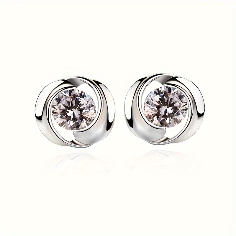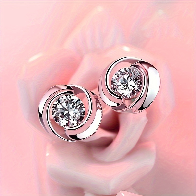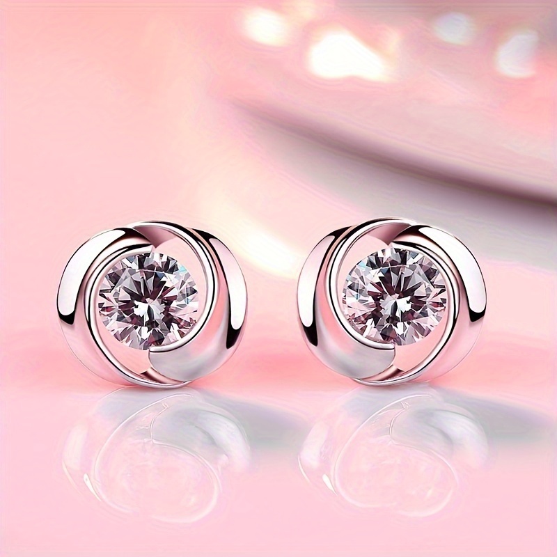 Round inlaid shiny zircon stud earrings, women's daily casual party stud earrings jewelry gift