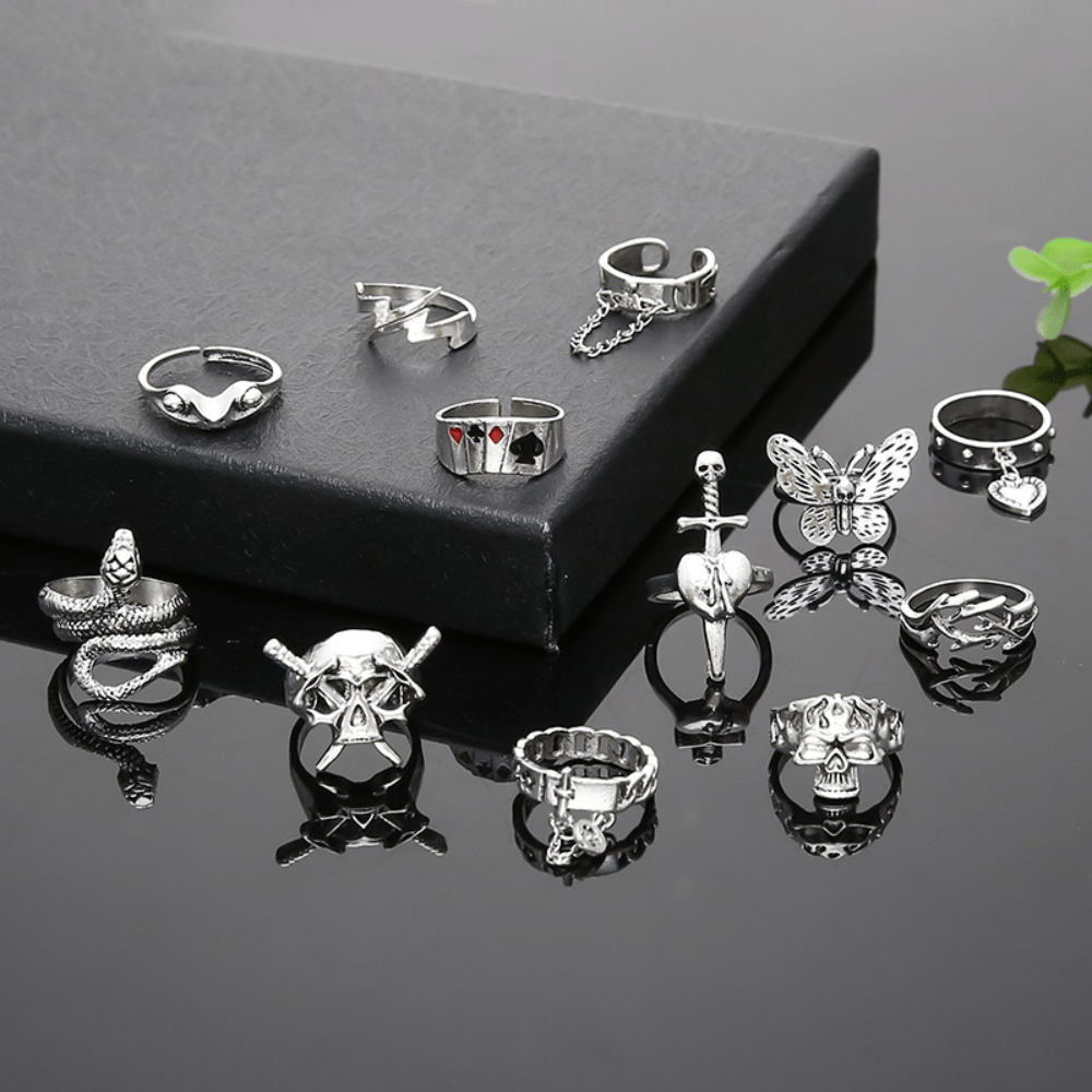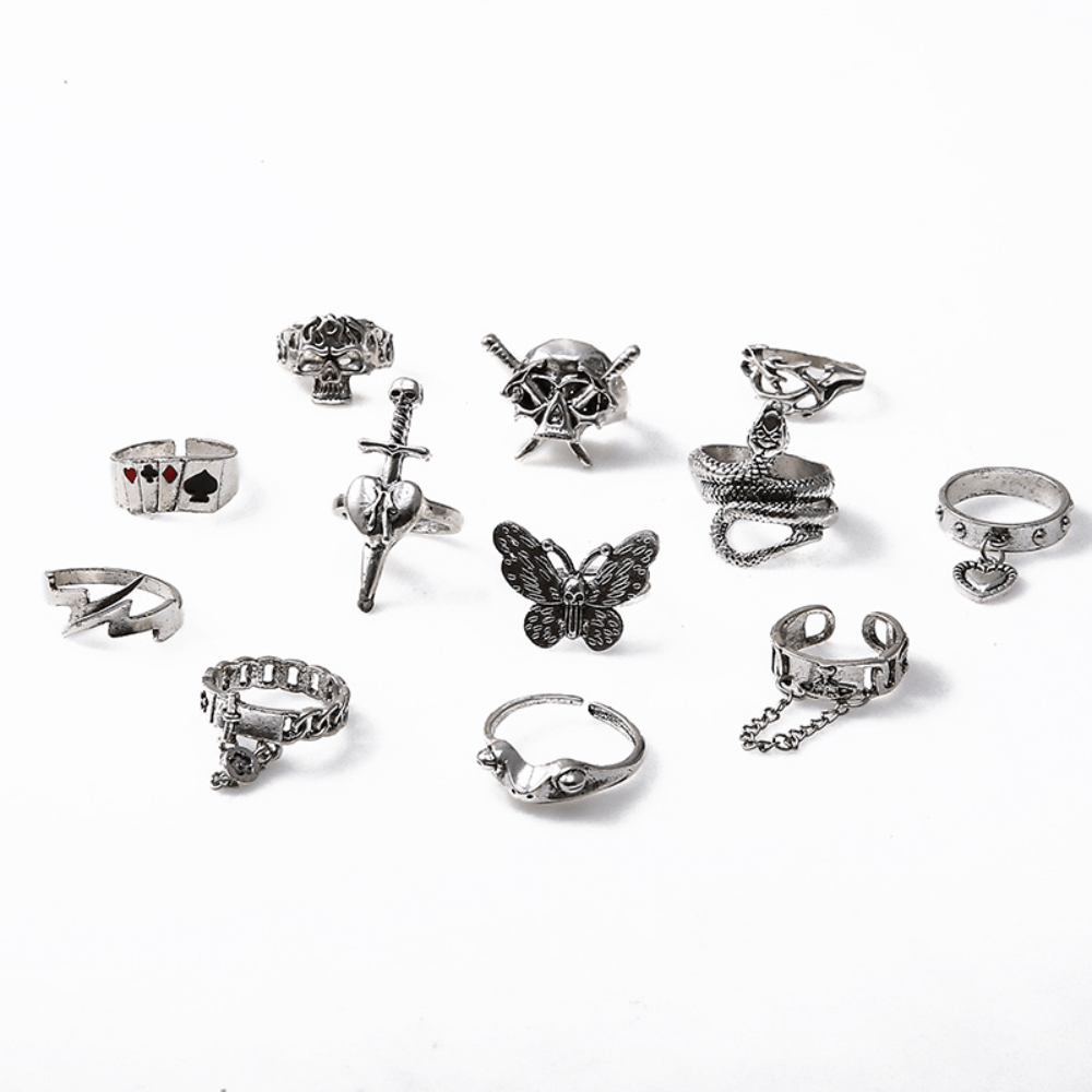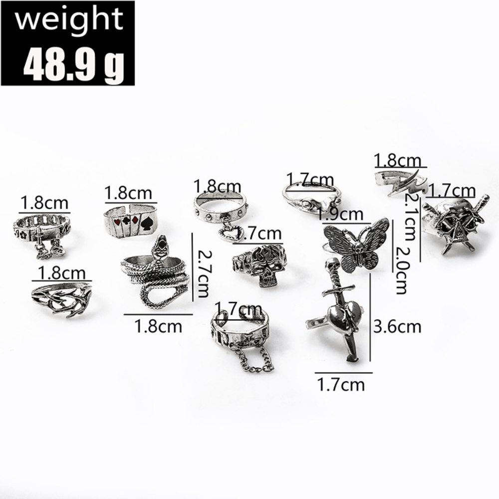 Set Ring Exaggerated Skull Sword Punk Style Snake Butterfly Animal Combination 12-piece Set