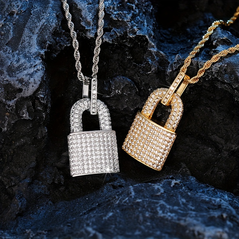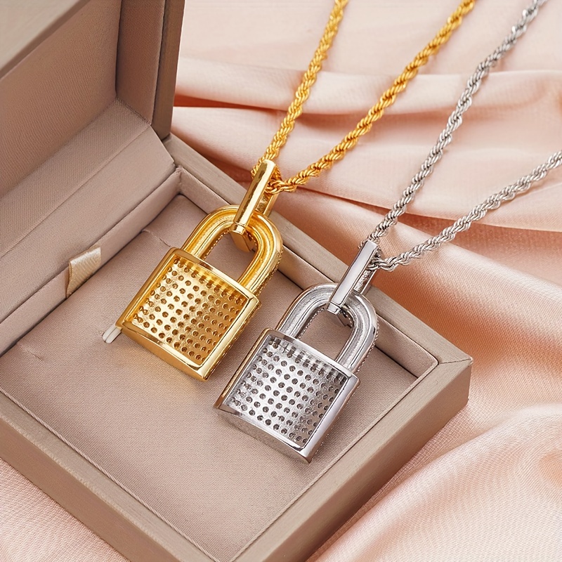 Shining exquisite copper zircon lock decorative pendant necklace, sparkling cute jewelry, suitable for friends' birthday gifts, daily life