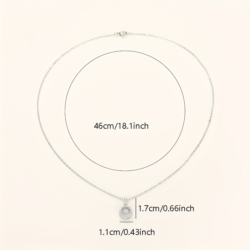 Shiny Round Zircon 925 Silver Plated Pendant Necklace, Women's Daily Party and Banquet Accessories