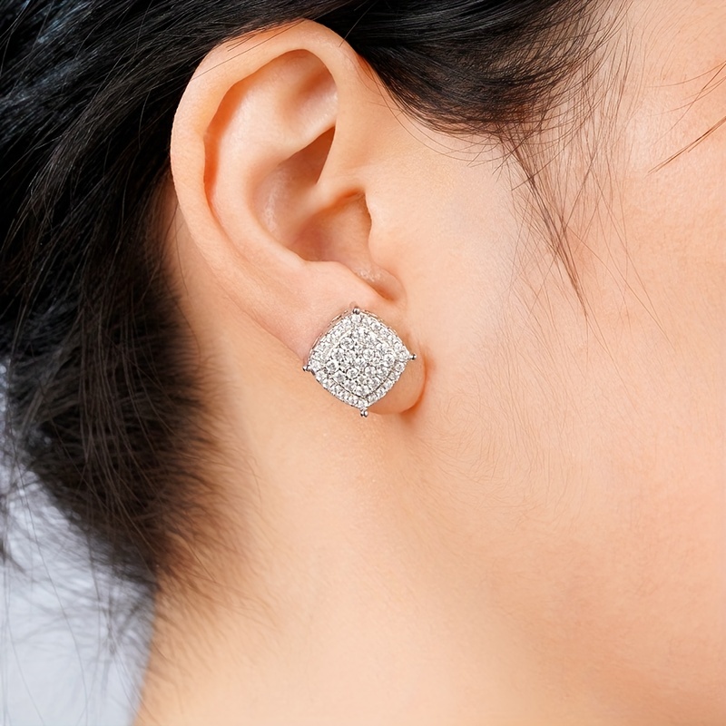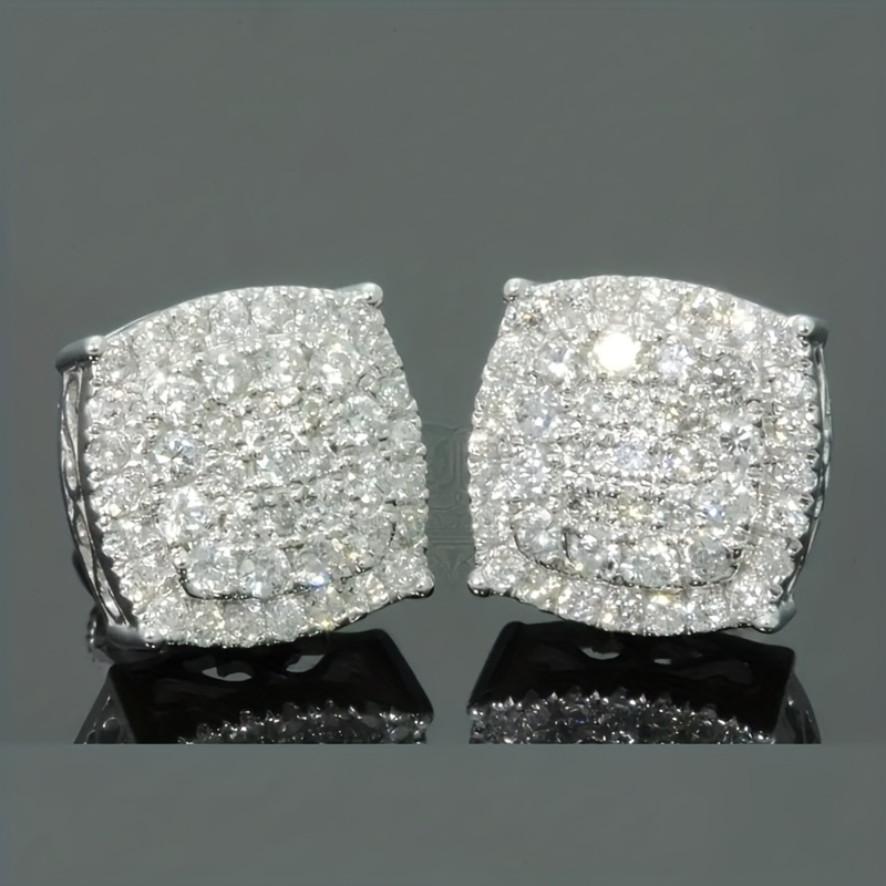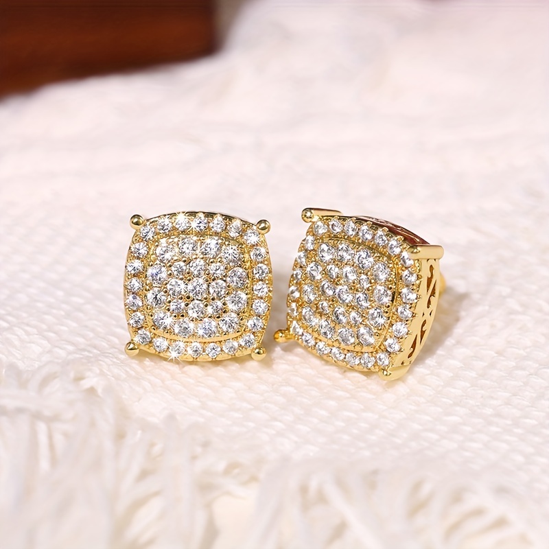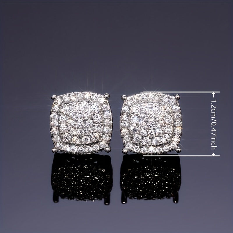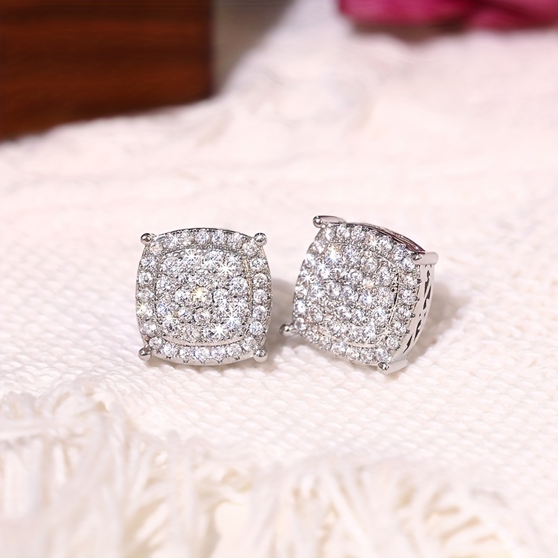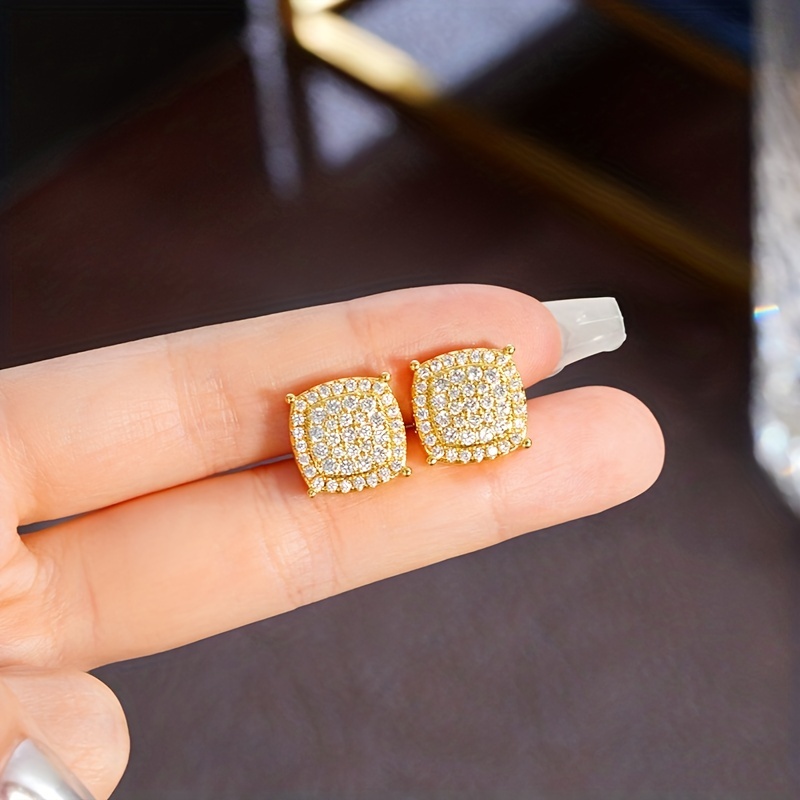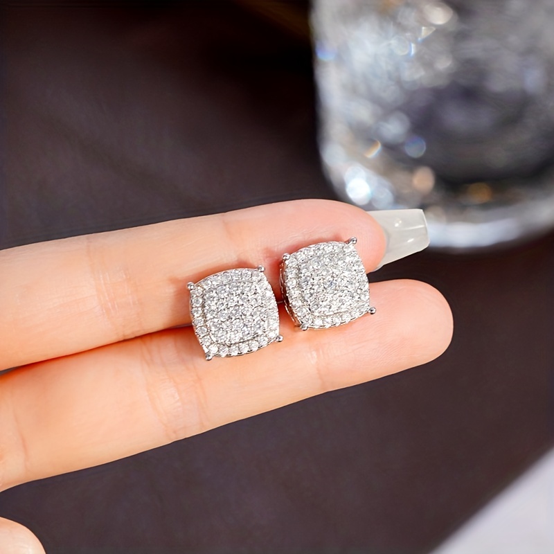 Shiny square stud earrings, fashionable and luxurious style, full diamond dating wedding earrings, women's exquisite earrings.