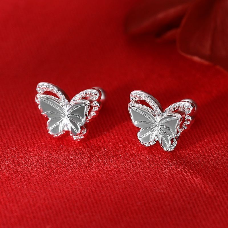 Silver butterfly earrings with S925 sterling silver stud earrings, hollow butterfly pattern, Women's fashion jewelry, earrings