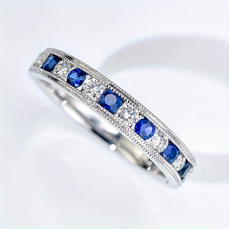 Silver Eternal Ring, Blue Cubic Zirconia Simple and elegant style, suitable for daily wear and women's anniversary gifts