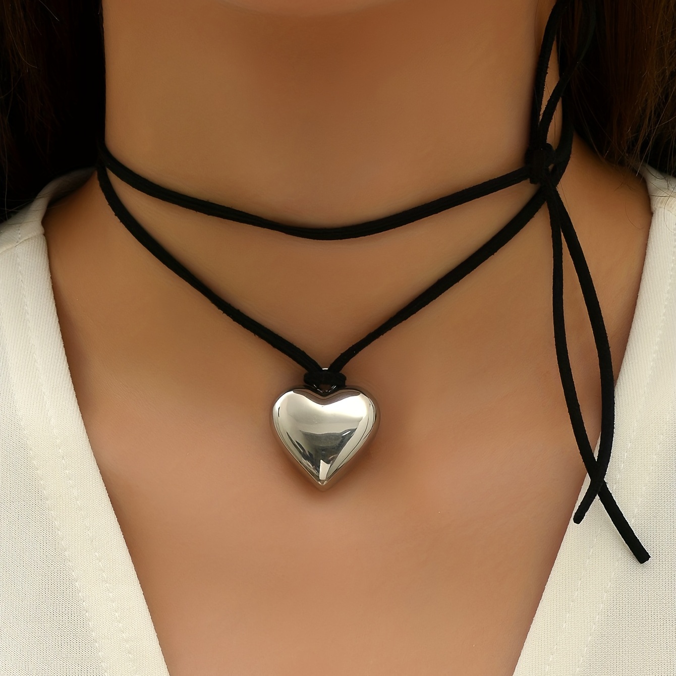 Silver heart-shaped irregular necklace, with retro irregular black necklace to show high-cold temperament