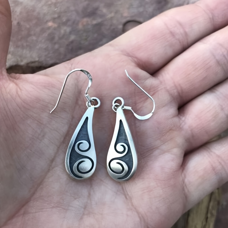 Silver Plated Teardrop Wave Earrings, Ocean Inspired Pendant Earrings, Minimalist Jewelry, Elegant Ladies Accessories