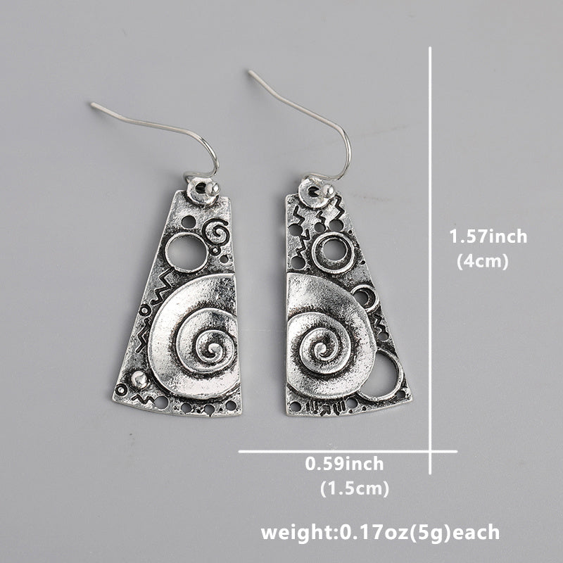 Silver Vintage Geometric Engraved Spiral Pattern Pendant Earrings Elegant Ethnic Style Silver Plated Jewelry Exquisite Women's Gifts