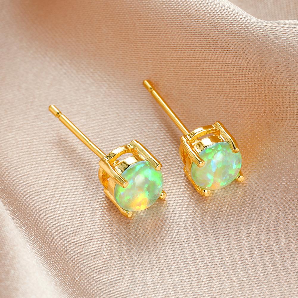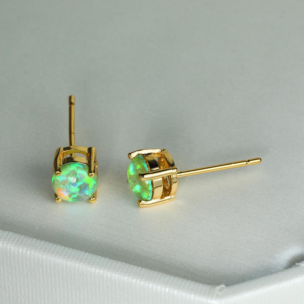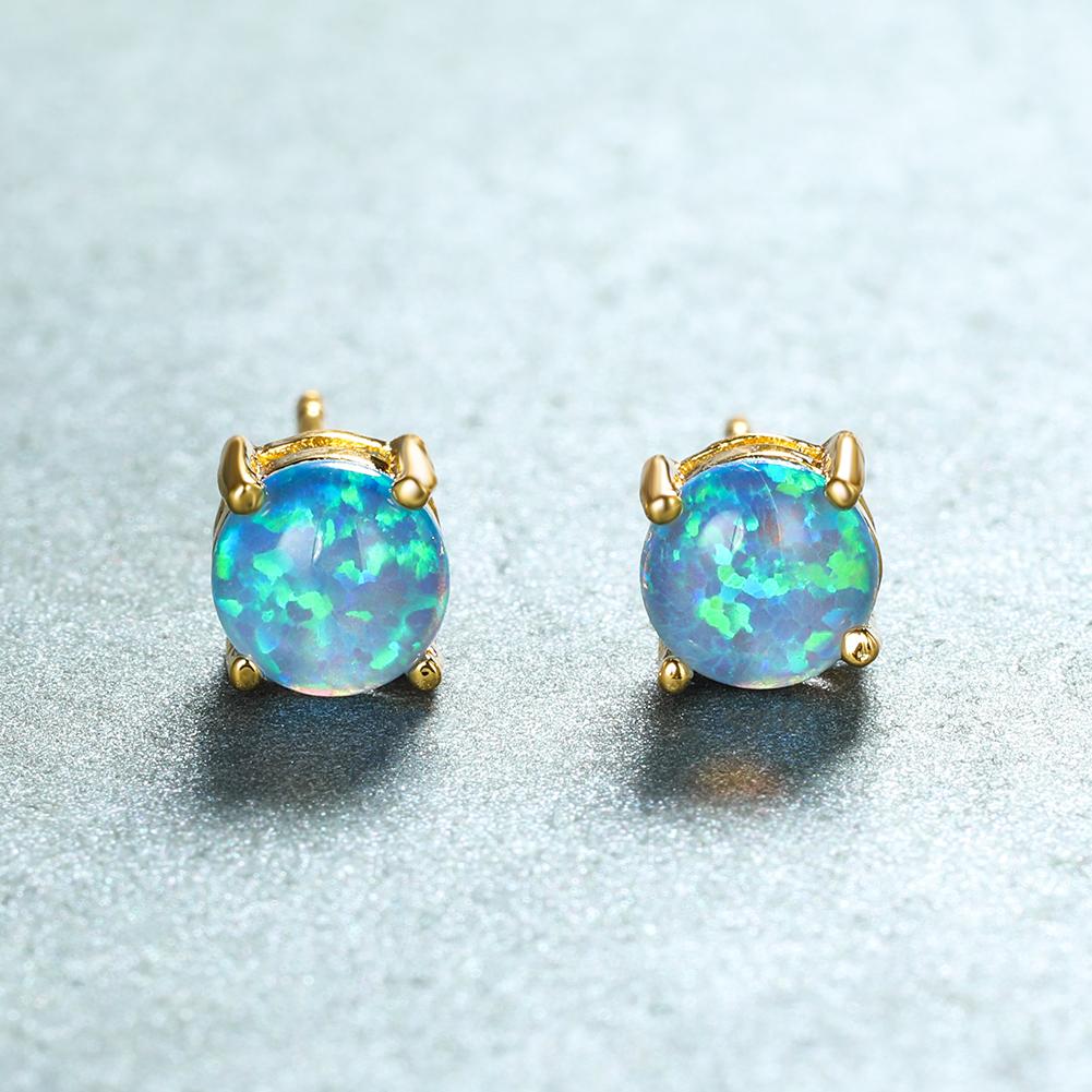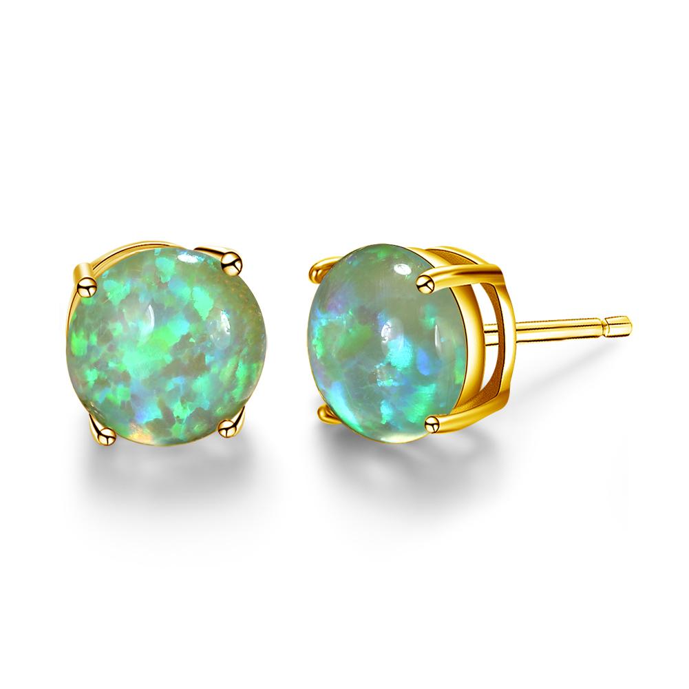 Simple and elegant oval synthetic opal stud earrings with gold-plated decoration make the perfect gift for stylish women.