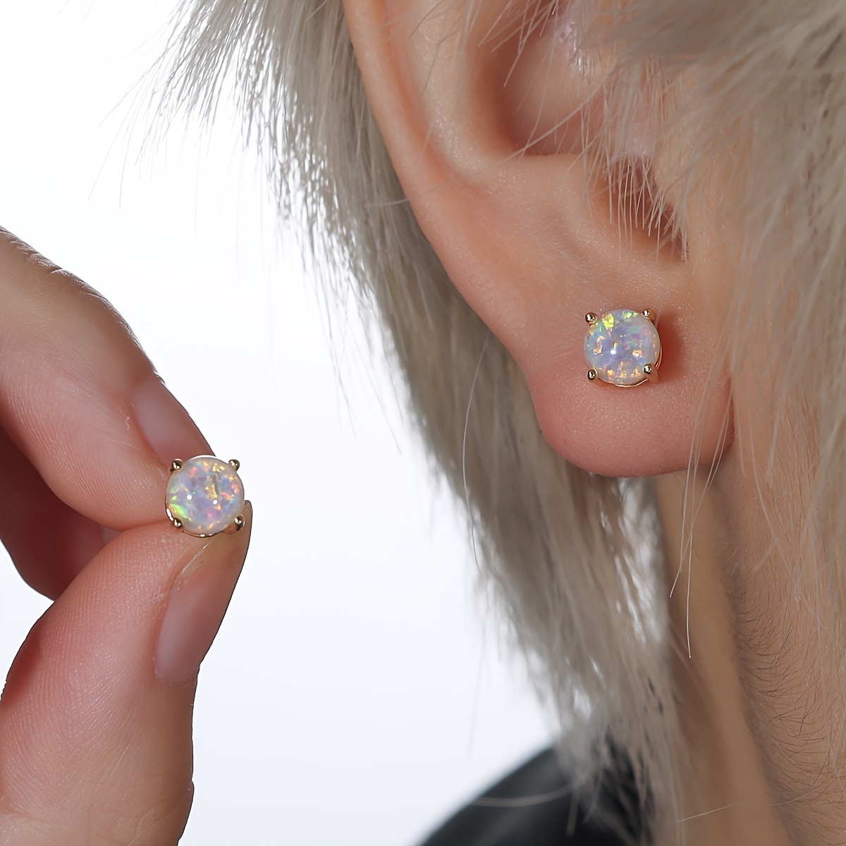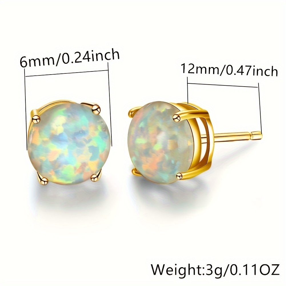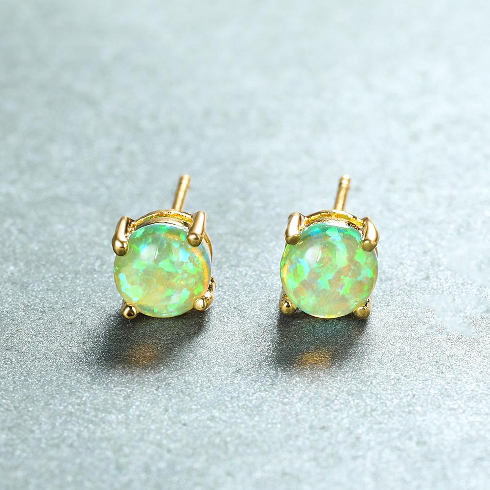 Simple and elegant oval synthetic opal stud earrings with gold-plated decoration make the perfect gift for stylish women.