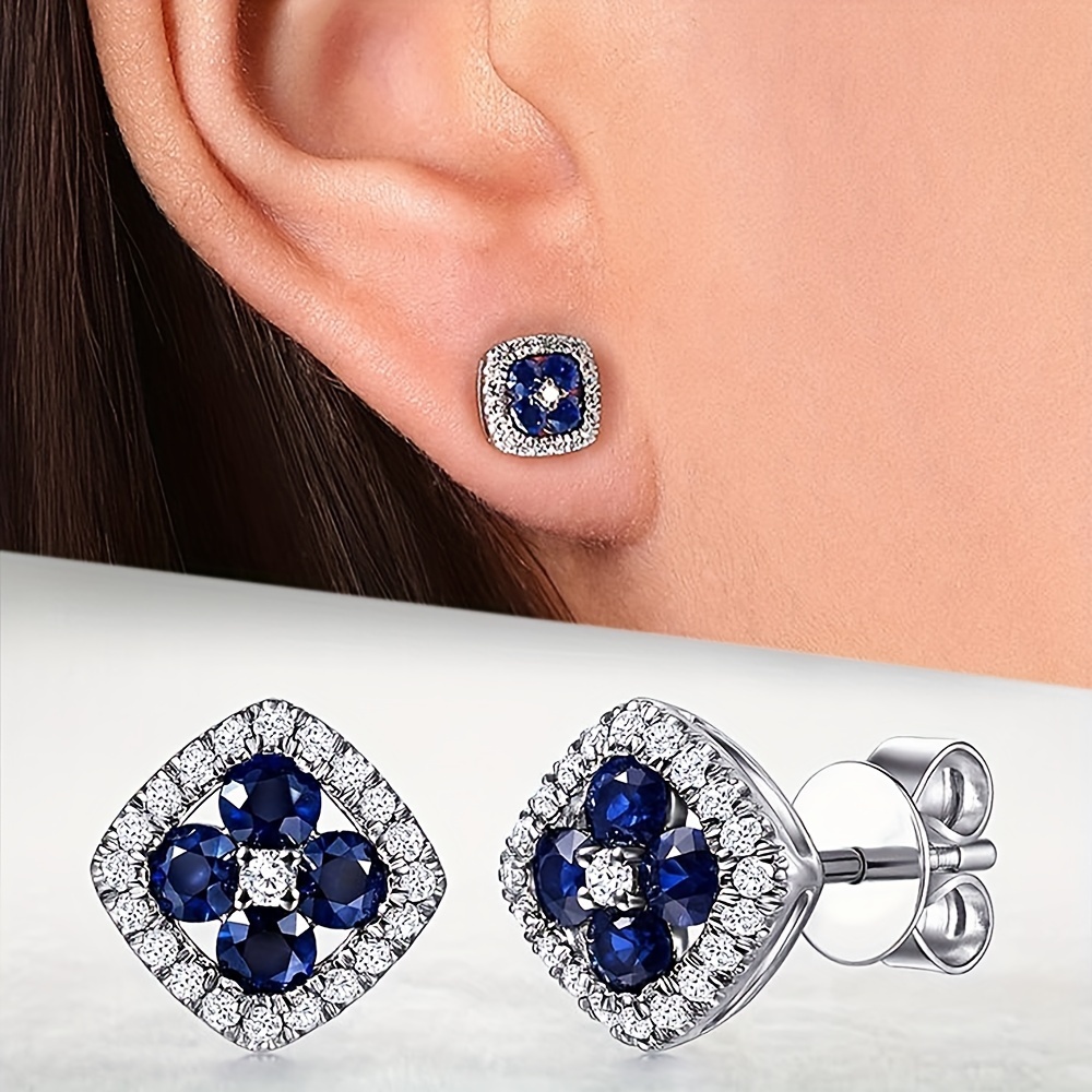 Simple and elegant square stud earrings set with blue synthetic gemstones, engagement banquet, party jewelry, everyday casual accessories for women