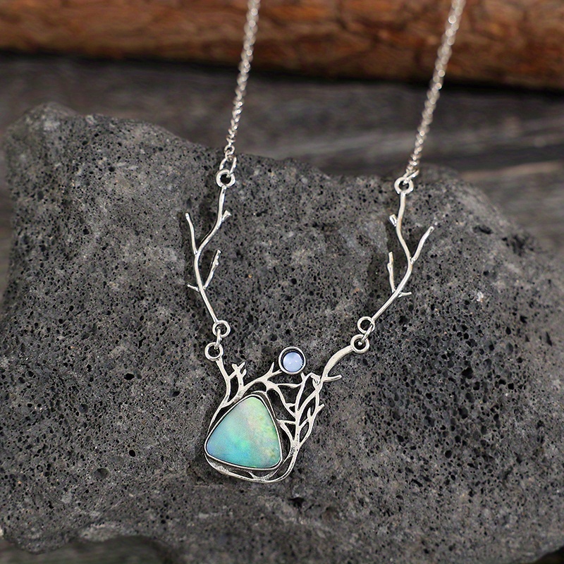 Simple Antlers Design Collarbone Chain Creative Triangle Colored Stone Hollow Pendant Necklace Christmas Ornament