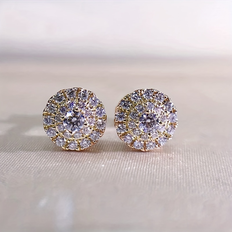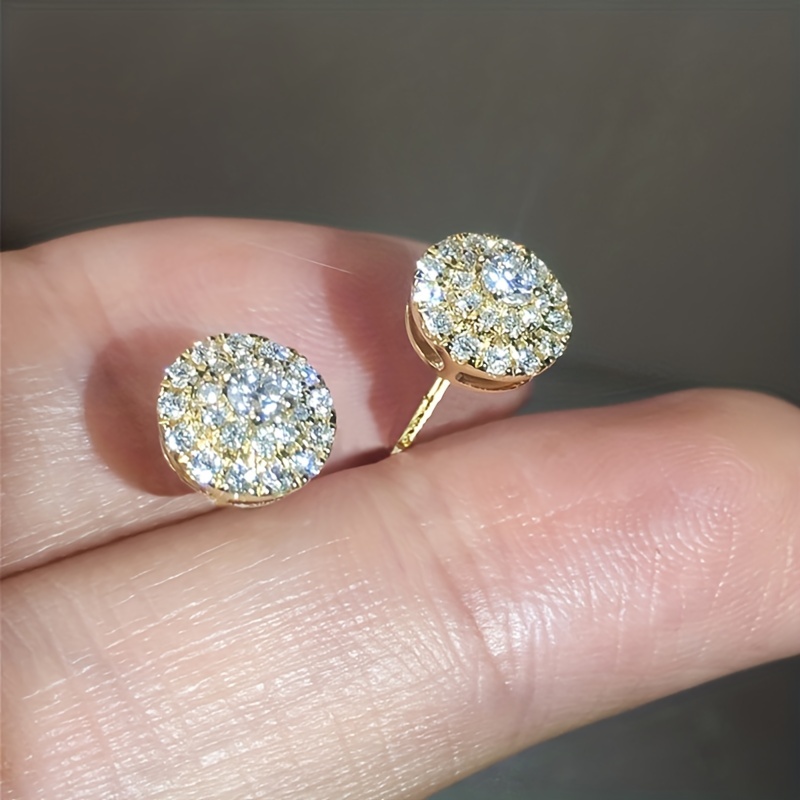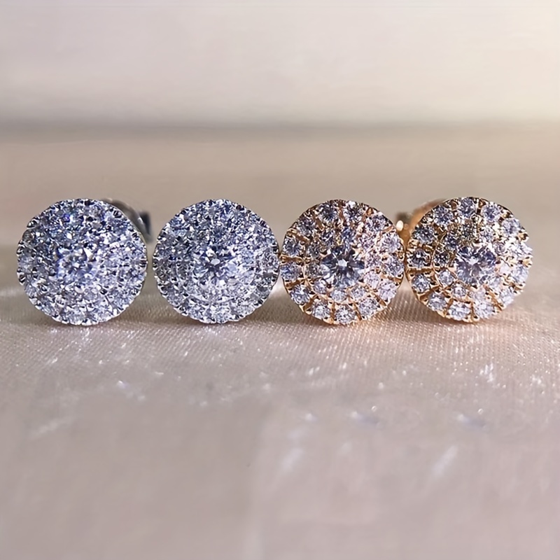 Simple bridal micro-inlaid zircon round stud earrings, women's wedding engagement party daily wear accessories elegant temperament