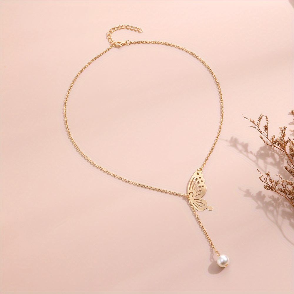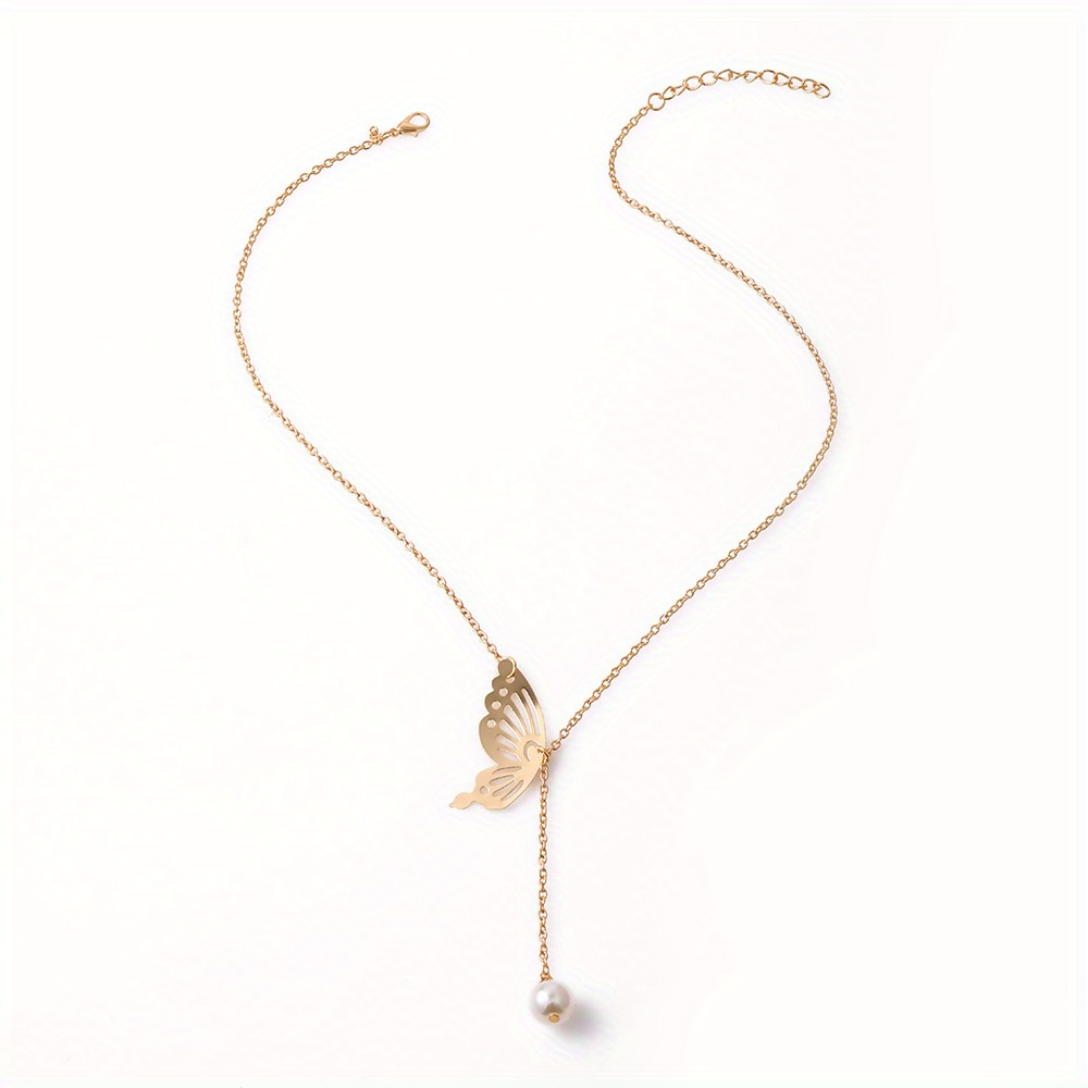 Simple Geometric Two-wear Temperament Necklace, Creative Hollow Butterfly Imitation Pearl Necklace for Women