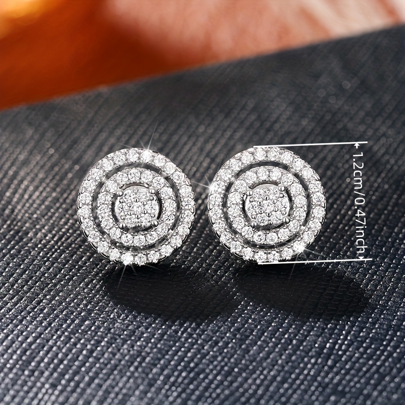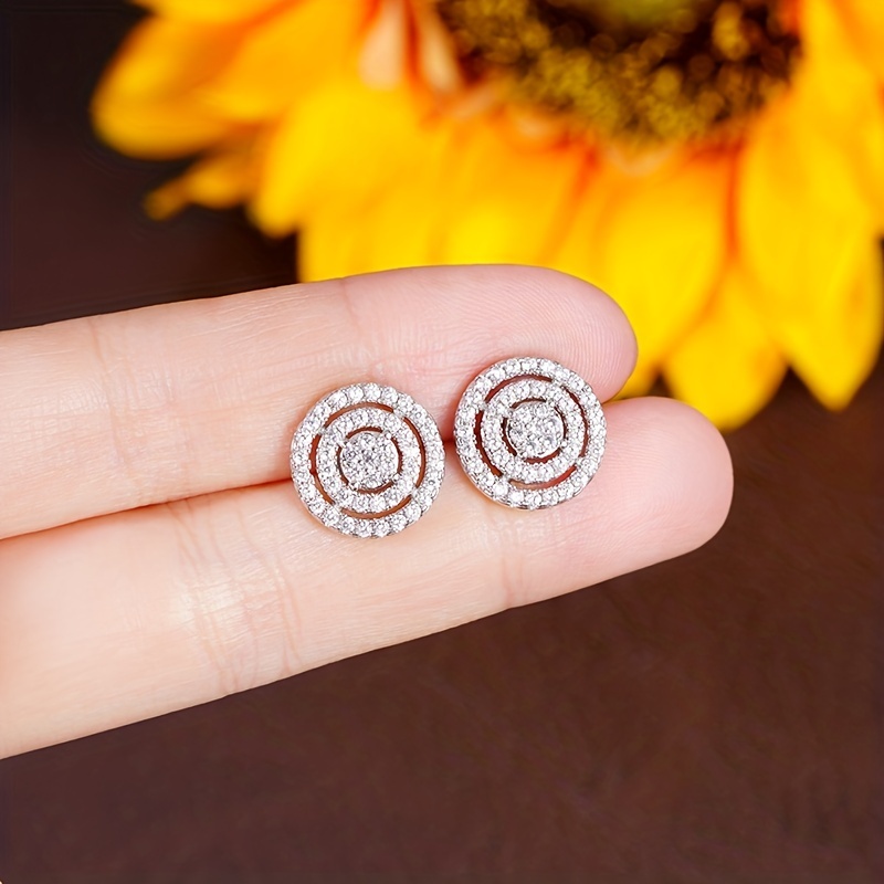 Simple Hollow Round Stud Earrings with Shiny Zirconia, Silver Plating, Elegant and Simple Style, Dating Wedding Earrings.