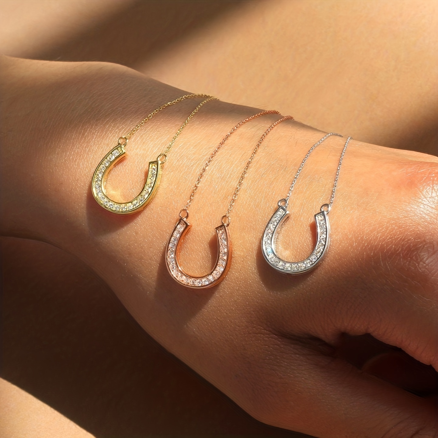 Simple horseshoe Zirconia pendant necklace, Women's daily wear fashion jewelry
