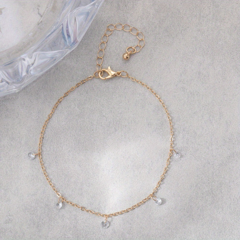 Simple Metal Chain Beach Anklet Women, Bohemian Fashion Rhinestone Foot Accessories