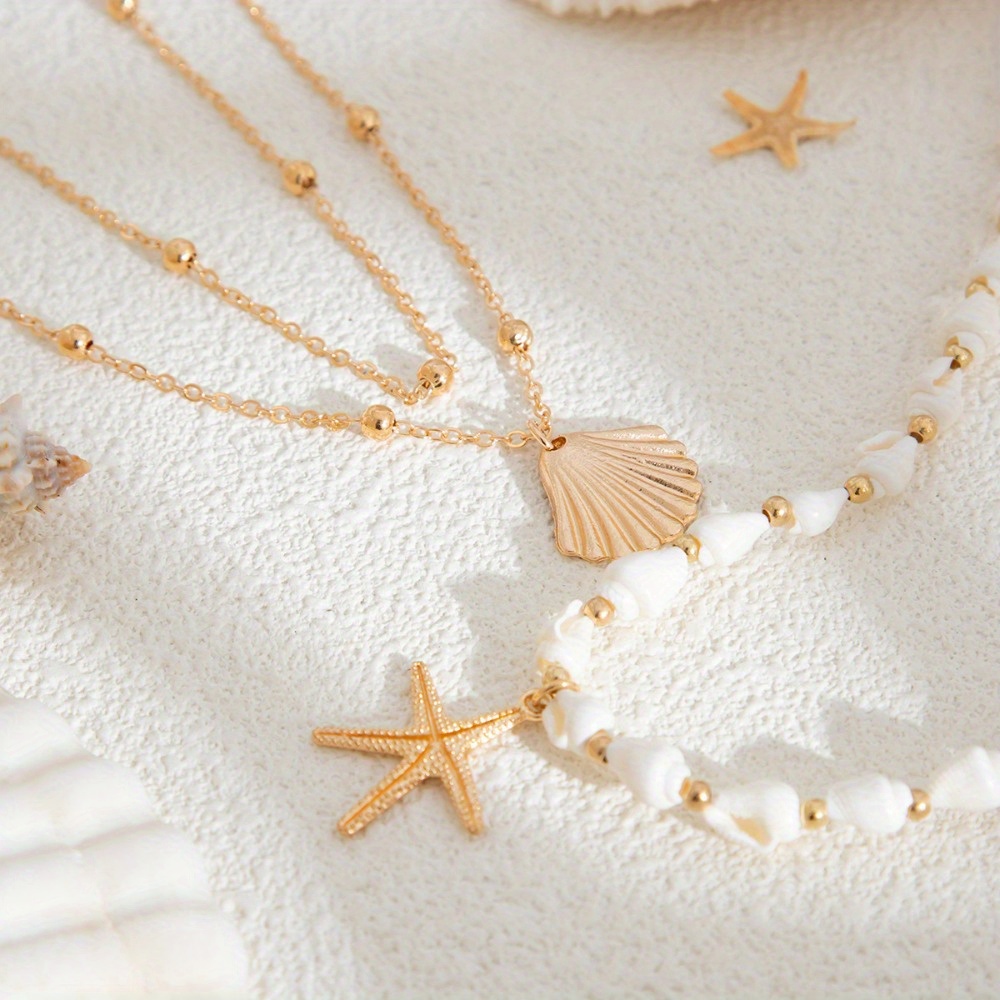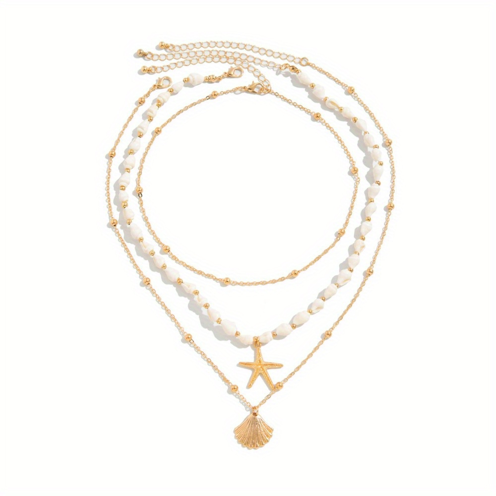 Simple Starfish Shell Pendant Necklace Vacation Style Pearl Beaded Collarbone Chain