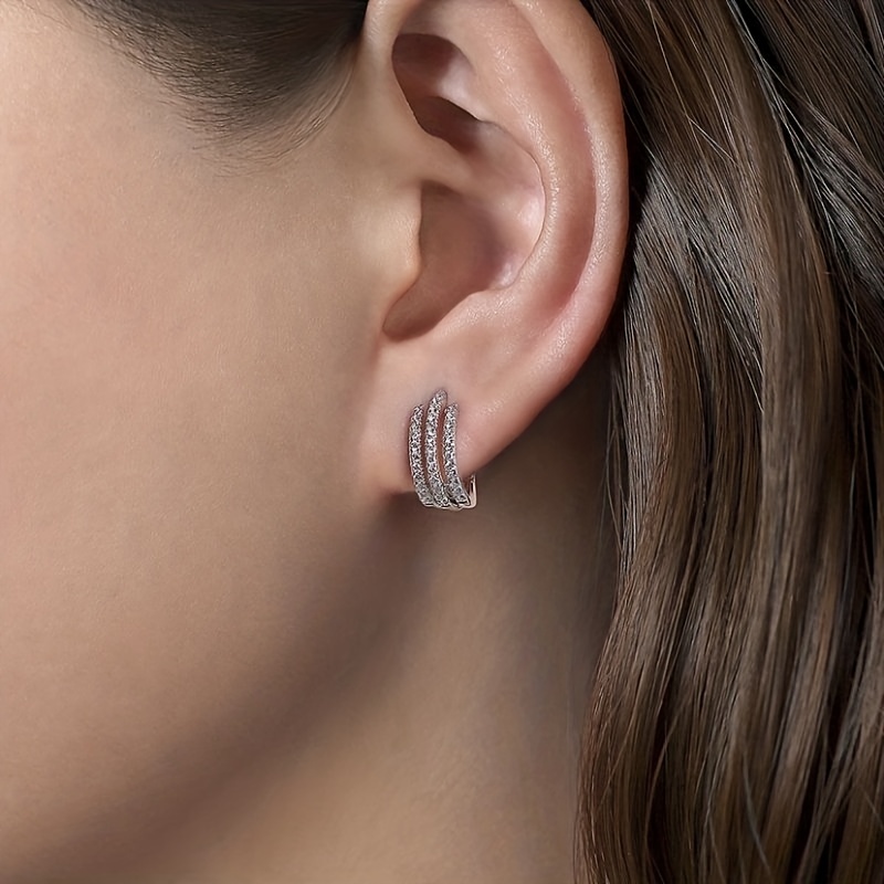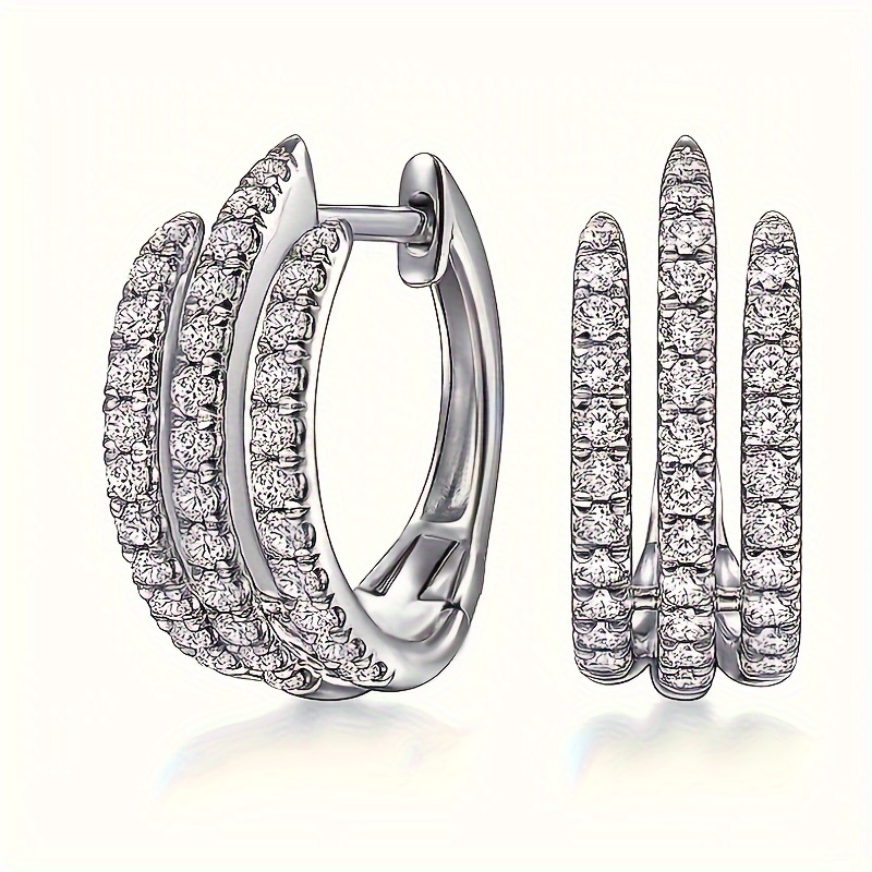 Simple three-claw zircon inlaid ring earrings, exquisite daily wear by exquisite women, elegant casual style exquisite gift